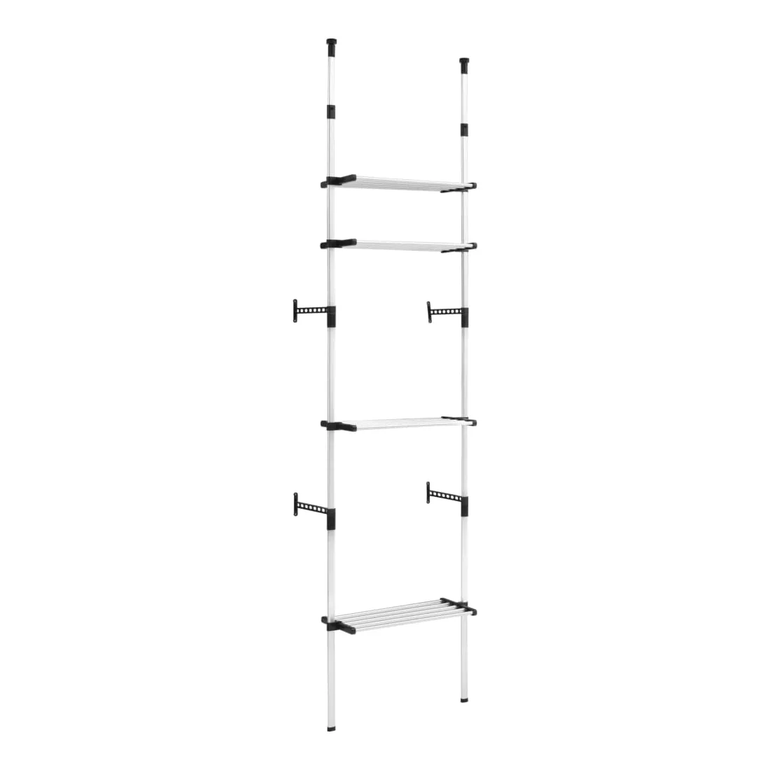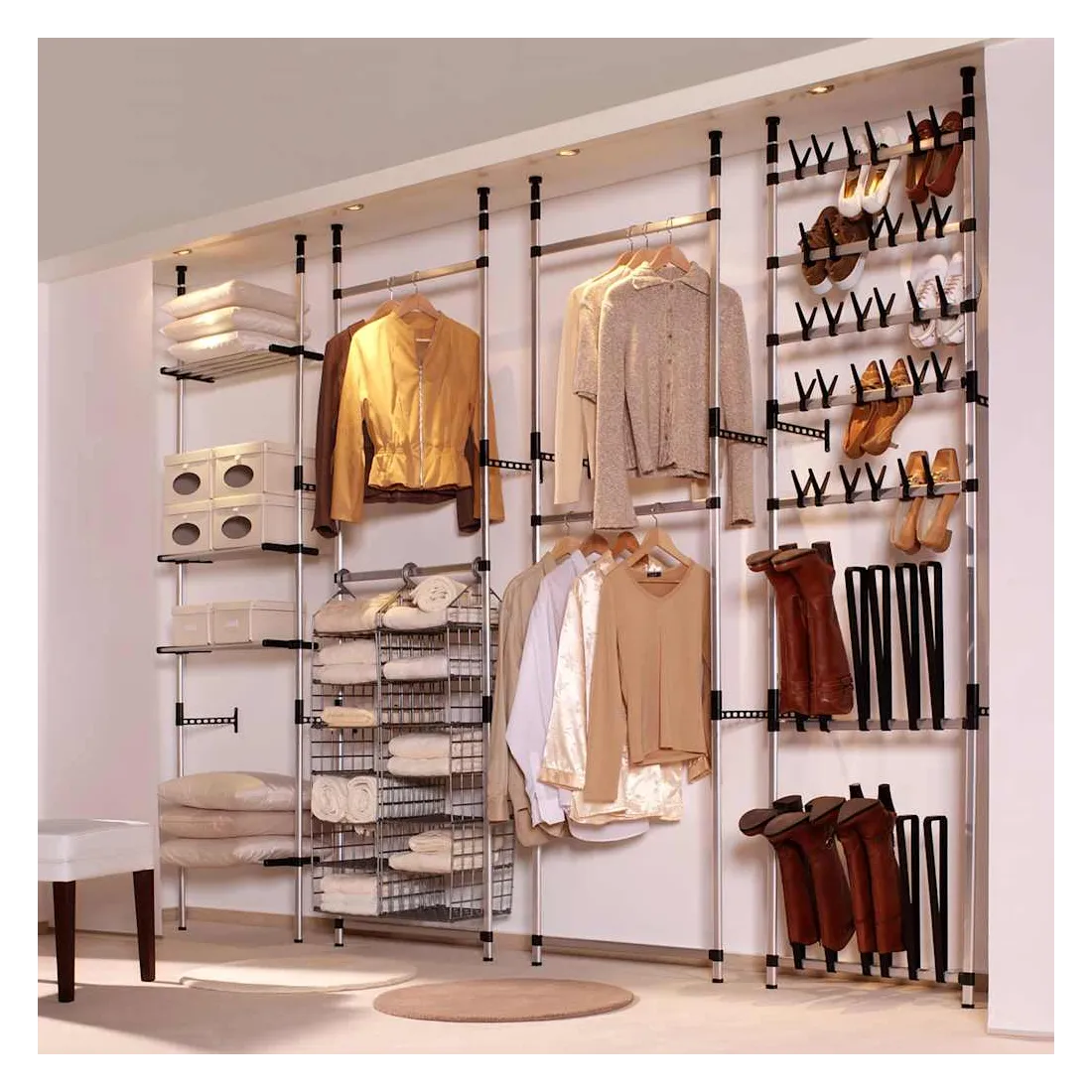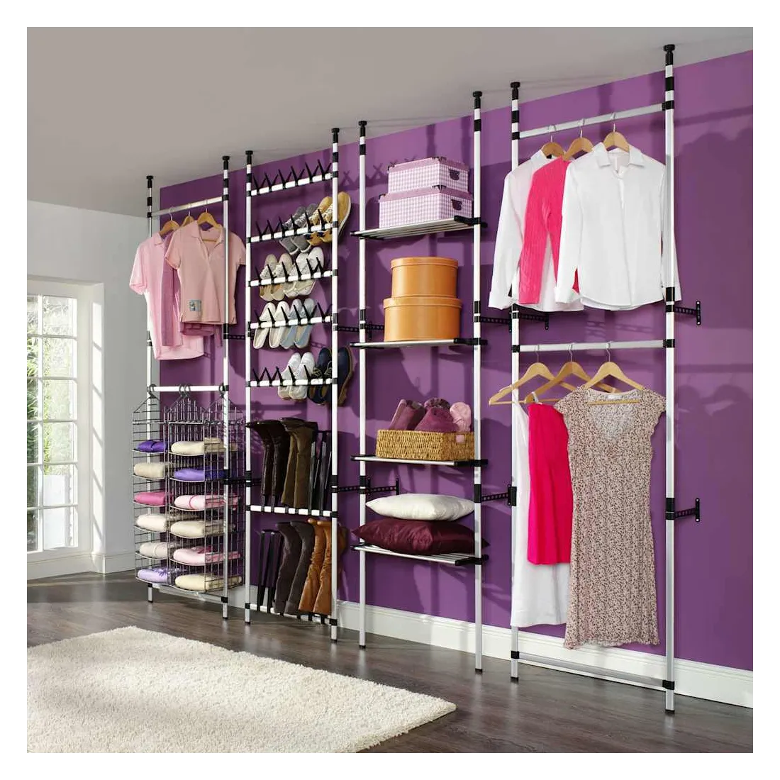 Notre portemanteau télescopique présente une conception simple pour économiser de l'espace dans votre chambre à cocher et dans toute autre pièce. Le système de garde-robe télescopique est en aluminium, ce qui le rend fort et robuste. Ce support de rangement peut être adaptable à différents aménagements spatiaux, grâce à son système télescopique et à la hauteur réglable. Il offre un moyen unique et ingénieux d'organiser votre garde-robe. Organisez vos vêtements et gardez votre pièce propre avec notre système d'organisation de garde-robe télescopique !