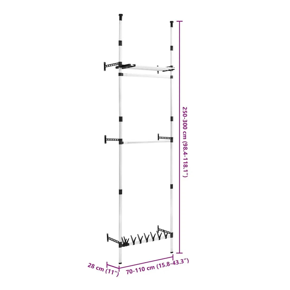 - Dimensions : 70-110 x 28 x 250-300 cm (l x P x H)