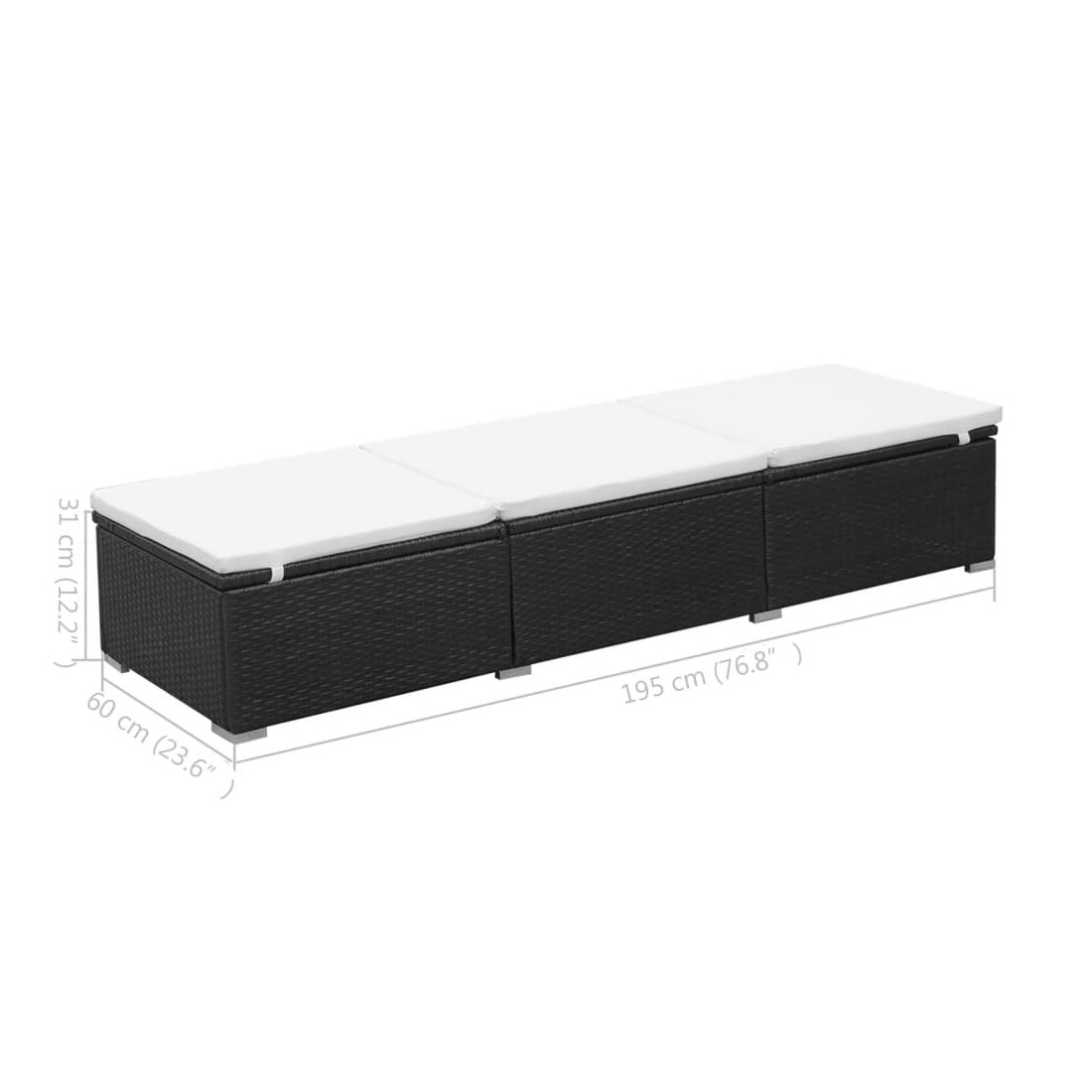 Notre chaise longue en résine tressée est idéale pour vous détendre au bord de la piscine, sur votre terrasse ou dans le jardin. Ayez l'impression d'être en vacances tous les jours de l'année ! Grâce à la résine tressée résistante à l'eau, la chaise longue est facile à nettoyer, résistante à l'usure et adaptée à une utilisation quotidienne. Le lit est doté d'une structure robuste en acier enduit de poudre, ce qui le rend très stable et durable. Les deux côtés du lit peuvent être relevés et réglés dans des positions différentes pour obtenir la position assise ou couchée la plus confortable. Le coussin épaississement rembourré et amovible avec rembourrage en mousse offre un confort optimal. La housse de coussin en polyester nécessitant peu d'entretien peut être facilement enlevée et lavée. Cette chaise longue est facile à assembler. La livraison comprend 2 chaises longues et 2 grands coussins de siège. Remarque : nous vous recommandons de couvrir la chaise longue pendant la pluie, la neige ou le gel.
