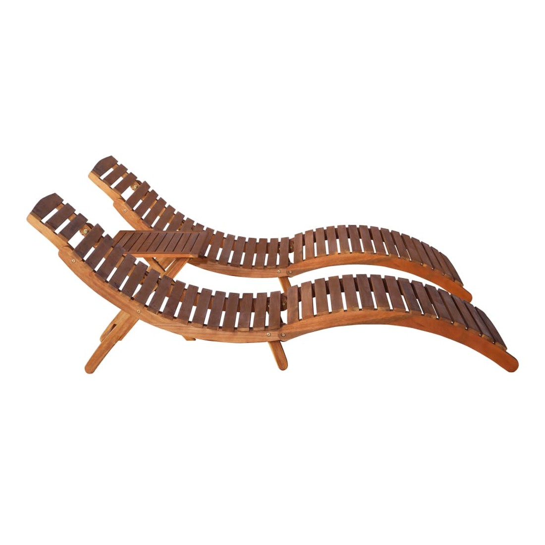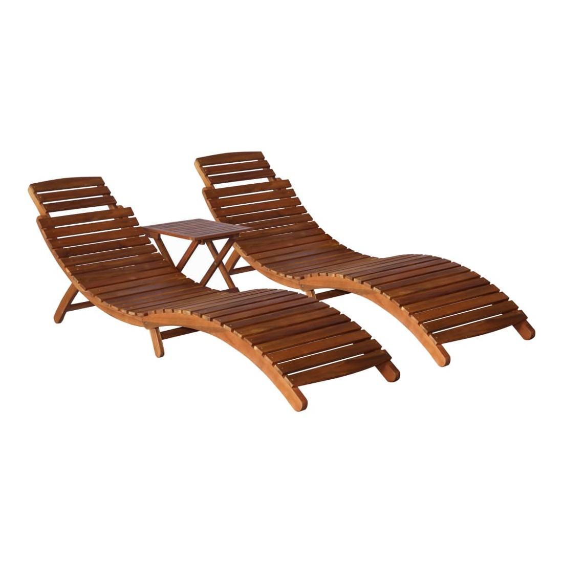 Cet ensemble de chaise longue, composé de 2 chaises longues et de 1 table pliante, combine le style et la fonctionnalité et ajoutera une touche de charme rustique à votre jardin, patio, pont de piscine ou tout autre espace de vie extérieur. La chaise longue et la table d'appoint sont fabriquées en bois d'acacia solide et durable, qui a été fini avec un revêtement d'huile naturelle et se caractérise par son excellente résistance aux intempéries. Par conséquent, notre ensemble de chaises longues est extrêmement adapté à une utilisation en plein air. La table pliable robuste offre un espace supplémentaire pour garder les petits objets à portée de main. Lorsqu'elles ne sont pas utilisées, la table et les chaises longues peuvent être pliées pour économiser de l'espace.
