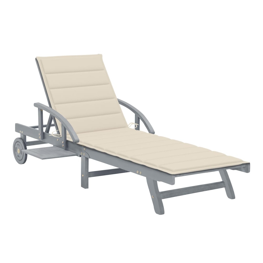Détendez-vous et reposez-vous dans votre jardin ou patio sur cette confortable chaise longue en bois ! Vous pouvez passer un après-midi de détente dans votre propre espace extérieur. Elle est parfaite pour une piscine, balcon, jardin, etc. Cette chaise longue d'extérieur est fabriquée en bois d’acacia massif avec une finition de couleur grise, ce qui la rend robuste et stable. Le dossier et le repose-pied sont réglables, et vous pouvez verrouiller la chaise longue dans la position souhaitée. Cette chaise longue de jardin peut être facilement déplacée autour de la maison avec 2 roues équipées. Le transat dispose d’une table coulissante pratique, pour placer votre téléphone, lunettes de soleil, boisson et autres petits articles. Le coussin ajoute un confort supplémentaire pendant que vou