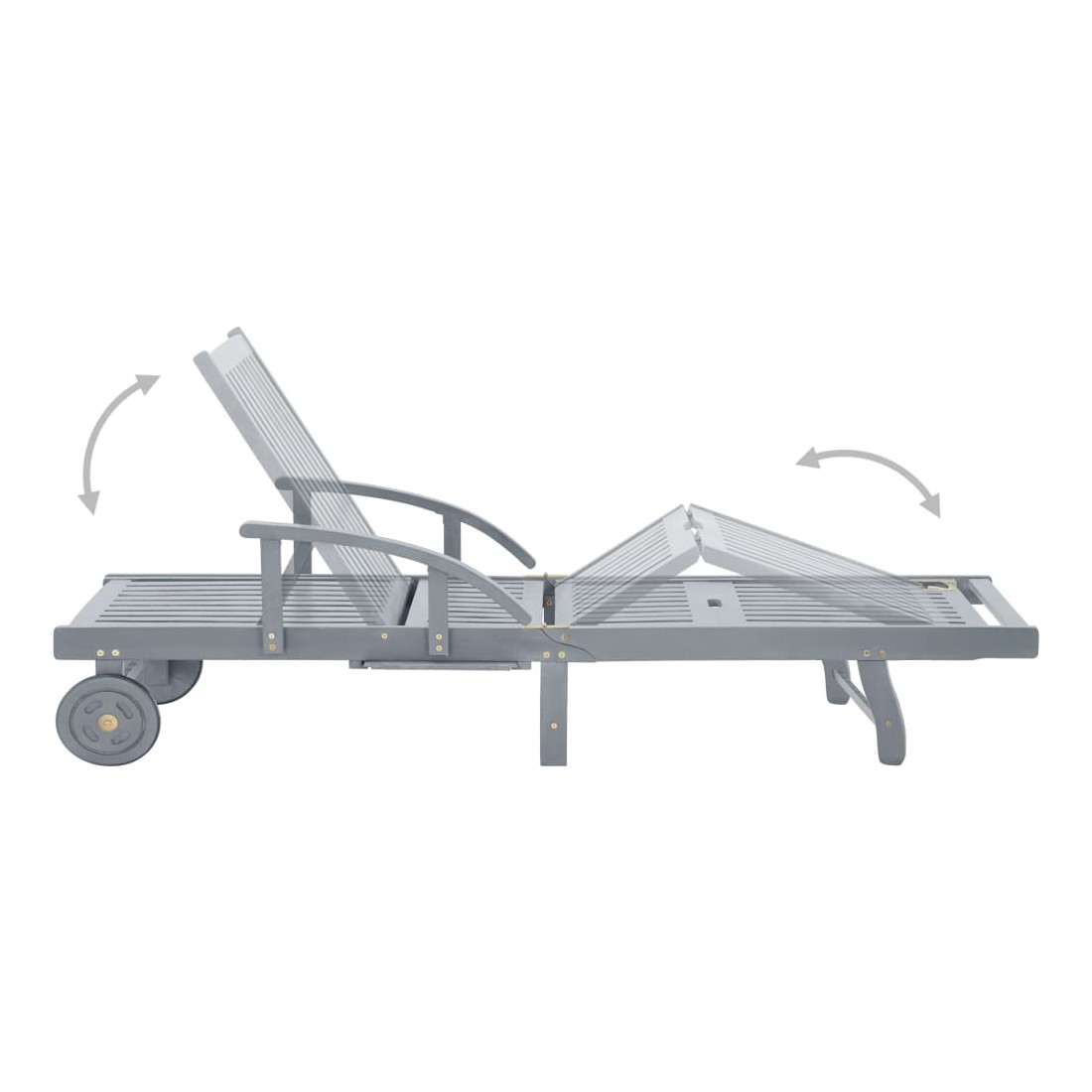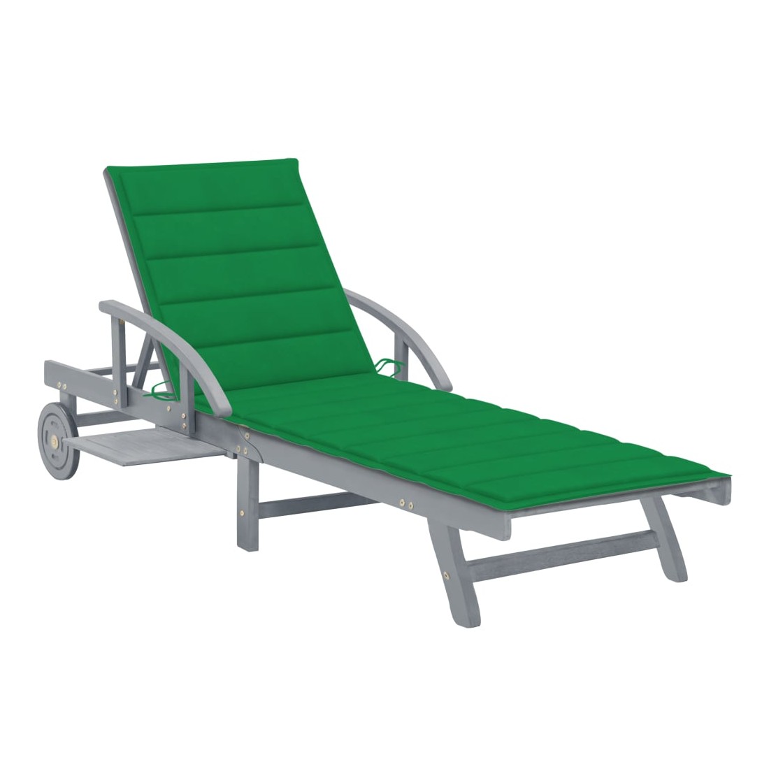 Détendez-vous et reposez-vous dans votre jardin ou patio sur cette confortable chaise longue en bois ! Vous pouvez passer un après-midi de détente dans votre propre espace extérieur. Elle est parfaite pour une piscine, balcon, jardin, etc. Cette chaise longue d'extérieur est fabriquée en bois d’acacia massif avec une finition de couleur grise, ce qui la rend robuste et stable. Le dossier et le repose-pied sont réglables, et vous pouvez verrouiller la chaise longue dans la position souhaitée. Cette chaise longue de jardin peut être facilement déplacée autour de la maison avec 2 roues équipées. Le transat dispose d’une table coulissante pratique, pour placer votre téléphone, lunettes de soleil, boisson et autres petits articles. Le coussin ajoute un confort supplémentaire pendant que vou