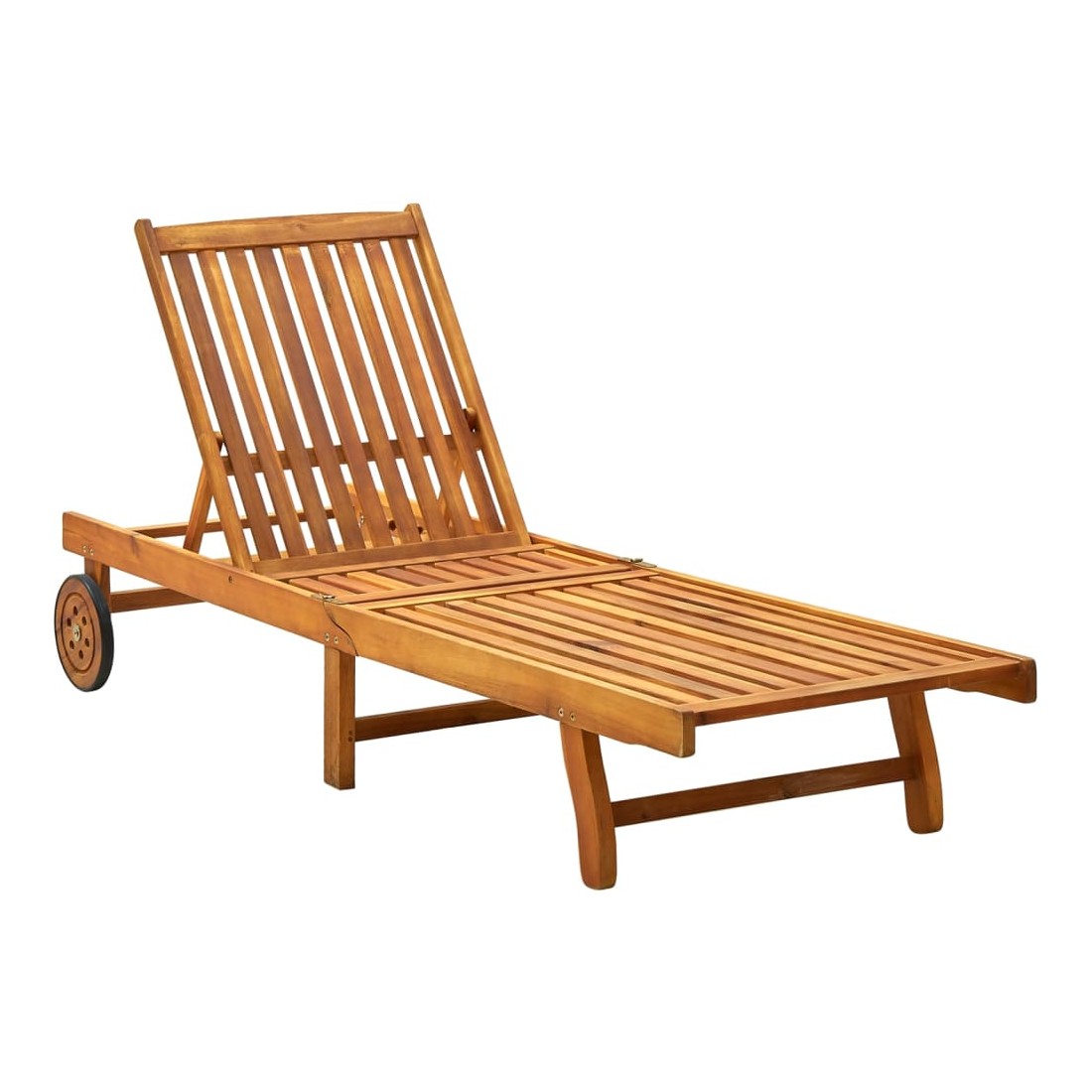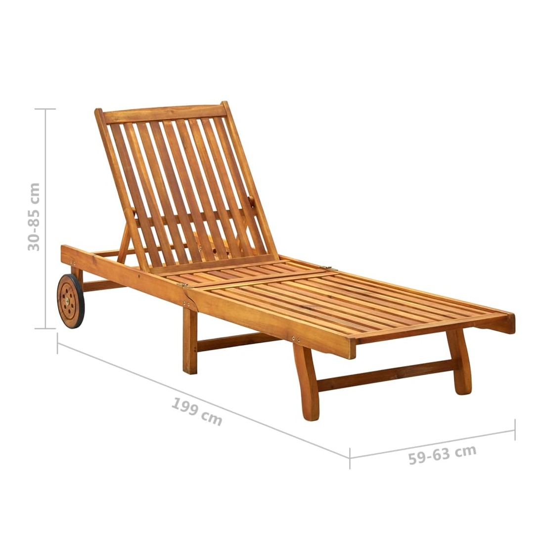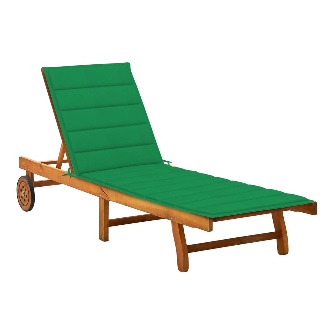 Détendez-vous et reposez-vous dans votre jardin ou patio sur cette confortable chaise longue en bois ! Vous pouvez passer un après-midi de détente dans votre propre espace extérieur. Elle est parfaite pour une piscine, balcon, jardin, etc. Cette chaise longue d'extérieur est fabriquée en bois d’acacia massif, ce qui la rend robuste et stable. Le dossier et le repose-pied sont réglables, et vous pouvez verrouiller la chaise longue dans la position souhaitée. Cette chaise longue de jardin peut être facilement déplacée autour de la maison grâce aux 2 roues. Le transat dispose d’une table coulissante pratique, pour placer votre téléphone, lunettes de soleil, boisson et autres petits articles. Le coussin ajoute du confort supplémentaire pendant que vous vous prélassez. Chaque coussin comprend deux jeux de cordes pour que vous puissiez le fixer solidement sur la chaise longue.