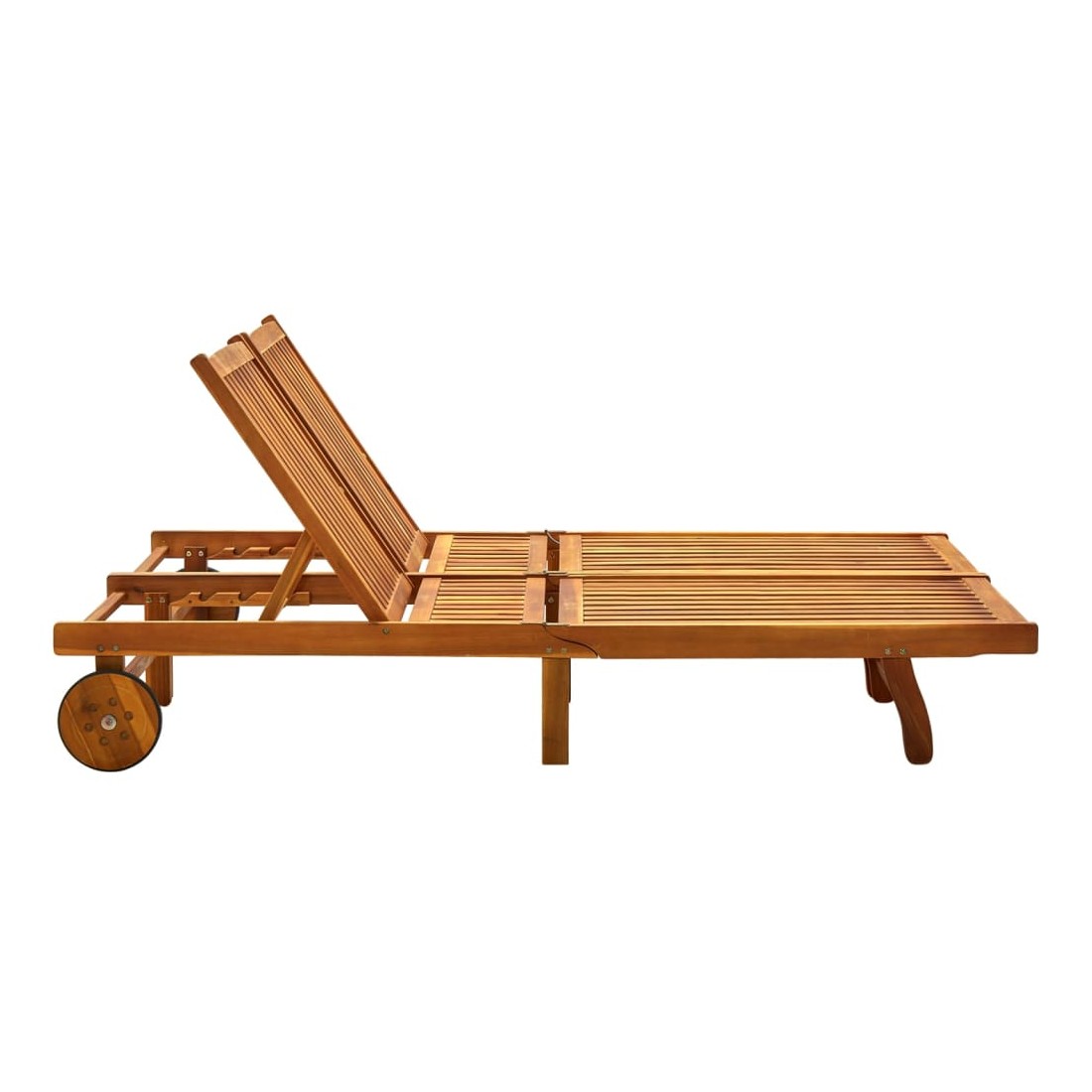 Détendez-vous et reposez-vous dans votre jardin ou patio sur cette confortable chaise longue en bois ! Vous pouvez passer un après-midi de détente dans votre propre espace extérieur. Elle est parfaite pour une piscine, balcon, jardin, etc. Cette chaise longue d'extérieur est fabriquée en bois d’acacia massif, ce qui la rend robuste et stable. Le dossier et le repose-pied sont réglables, et vous pouvez verrouiller la chaise longue dans la position souhaitée. Cette chaise longue de jardin peut être facilement déplacée autour de la maison grâce à 2 roulettes. Le coussin ajoute un confort supplémentaire pendant que vous vous prélassez.