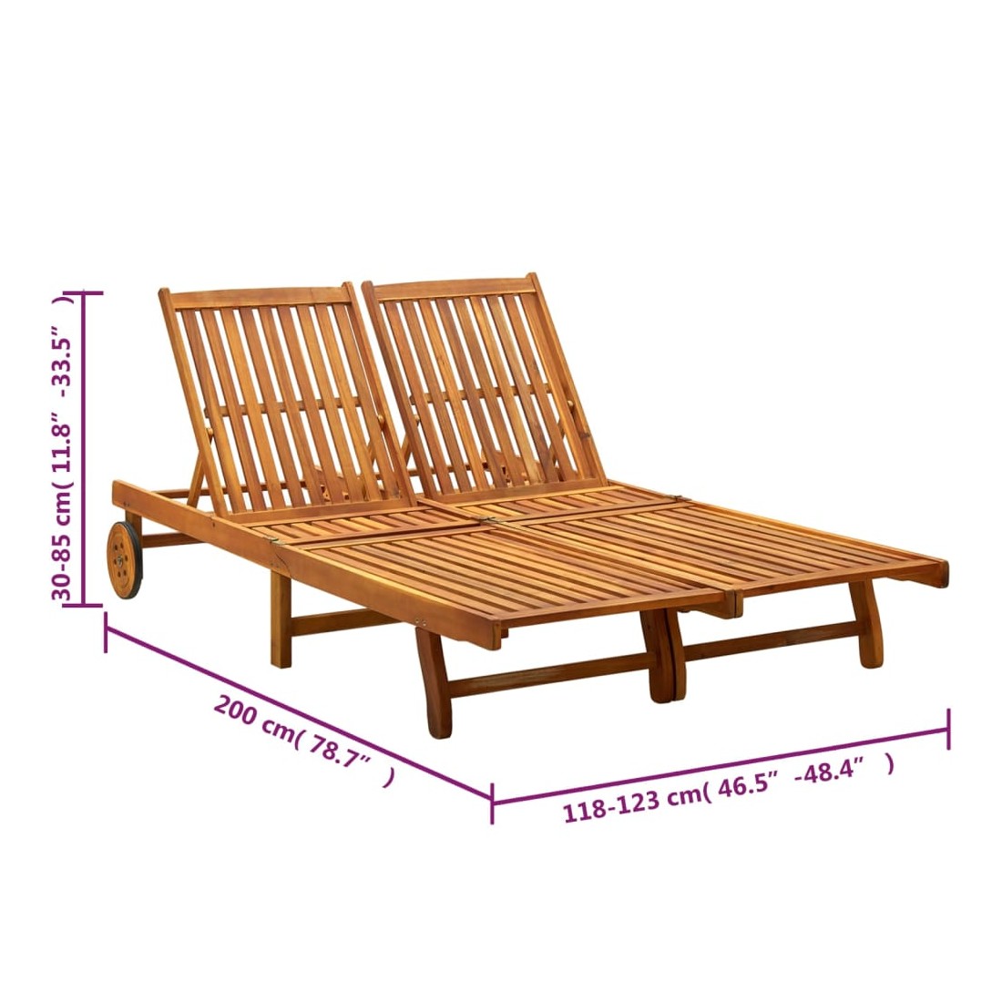 - Dimensions : 200 x 118/123 x 30/62/76/85 cm (l x P x H)