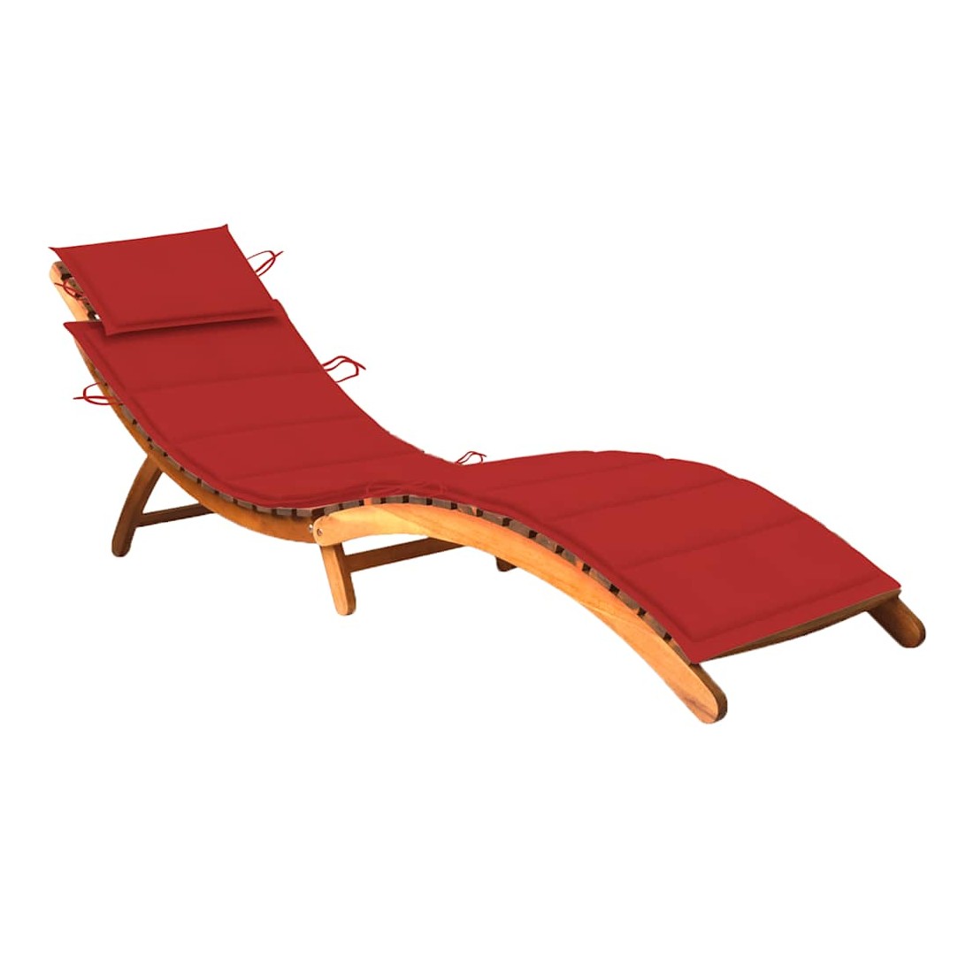 Détendez-vous et reposez-vous dans votre jardin ou sur votre patio sur cette confortable chaise longue en bois ! Vous pouvez passer un après-midi de détente dans votre propre espace extérieur ! Elle est parfaite pour une piscine, un balcon, un jardin, etc. Cette chaise longue d'extérieur est fabriquée en bois d’acacia massif, ce qui la rend robuste et stable. Le lit de repos présente une forme incurvée ergonomique, vous permettant de vous allonger et de vous détendre pleinement. Ce transat peut être replié lorsqu'il n’est pas utilisé. Le coussin avec appui-tête ajoute un confort supplémentaire pendant que vous vous prélassez. Chaque coussin comprend six ensembles de cordes pour que vous puissiez le fixer solidement sur la chaise longue.