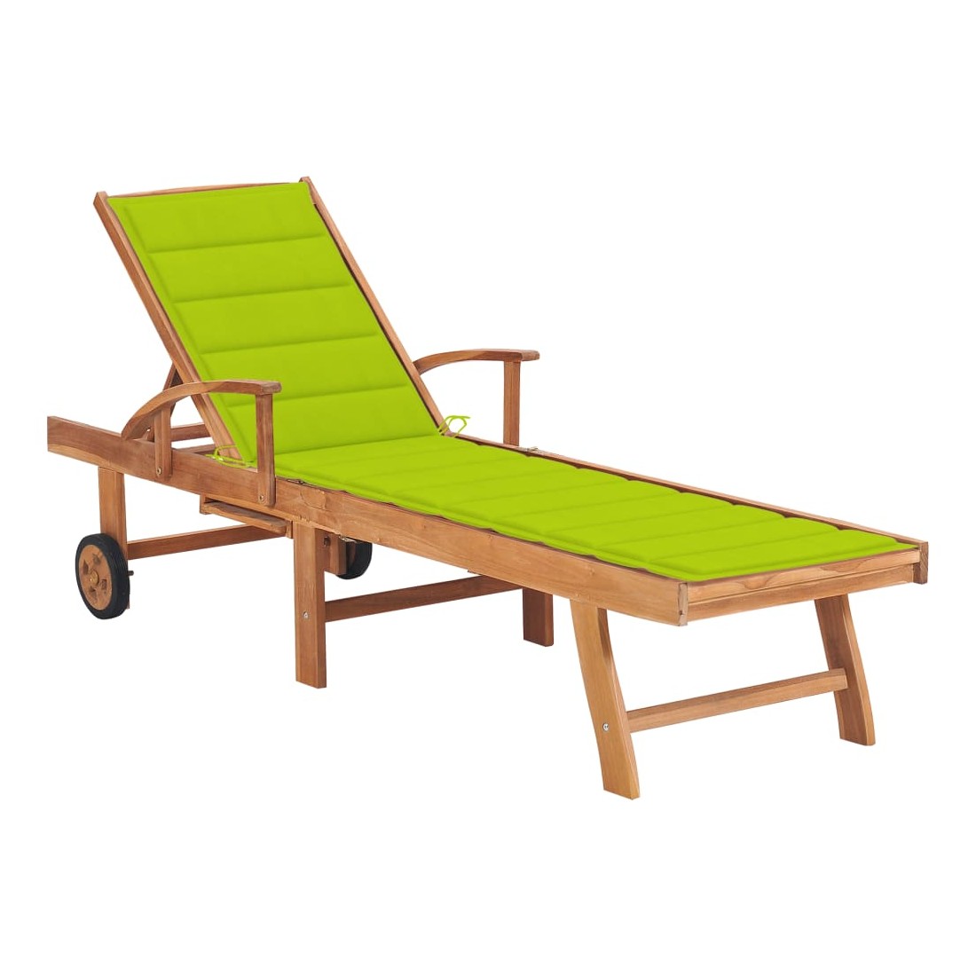 Cette chaise longue classique en bois avec un design à lattes attrayant, ajoute une touche de charme rustique à votre jardin, patio, terrasse de la piscine ou tout espace extérieur. Fabriquée en bois dur de teck extrêmement durable, cette pièce de meuble en teck a été chevronnée, séchée au four puis finement poncée pour lui donner un aspect très lisse. Le bois de teck est connu pour sa résistance exceptionnelle aux intempéries, ce qui le rend bien plus adapté aux meubles de jardin que tout autre type de bois. Le bois de teck est le choix idéal si vous souhaitez acheter une pièce de meubles de jardin durable. Le lit de repos est équipé de 2 roues, pour le déplacer facilement. Le dossier peut être ajusté dans 4 positions, de la position assise entièrement droite à la position complètement à plat. Les lattes du siège et du dossier offrent également un excellent soutien et un grand confort et deux accoudoirs offrent un endroit pour reposer vos bras. De plus, le coussin inclus est plus qu'un supplément pratique ; il a également une fonction décorative. Remarque : afin de prolonger la durée de vie des meubles d'extérieur, nous vous recommandons de les protéger avec une housse imperméable.