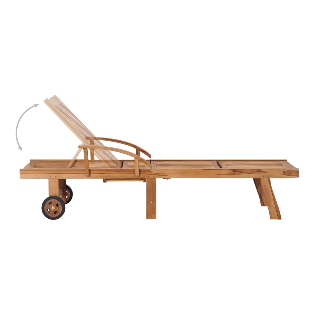 Cette chaise longue classique en bois avec un design à lattes attrayant, ajoute une touche de charme rustique à votre jardin, patio, terrasse de la piscine ou tout espace extérieur. Fabriquée en bois dur de teck extrêmement durable, cette pièce de meuble en teck a été chevronnée, séchée au four puis finement poncée pour lui donner un aspect très lisse. Le bois de teck est connu pour sa résistance exceptionnelle aux intempéries, ce qui le rend bien plus adapté aux meubles de jardin que tout autre type de bois. Le bois de teck est le choix idéal si vous souhaitez acheter une pièce de meubles de jardin durable. Le lit de repos est équipé de 2 roues, pour le déplacer facilement. Le dossier peut être ajusté dans 4 positions, de la position assise entièrement droite à la position complètemen