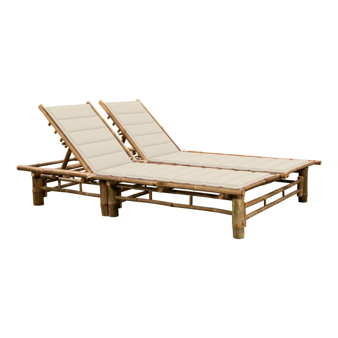 Cette chaise longue confortable pour 2 personnes est idéale pour vous détendre, lire ou simplement vous bronzer dans le jardin. Cette chaise longue est faite de bambou résistant aux intempéries et durable qui ajoute une touche tropicale à votre espace de vie extérieur. Ses dossiers séparés sont réglables en 3 positions d'inclinaison, vous pouvez donc toujours trouver la position la plus confortable. Les coussins ajoutent un confort supplémentaire pendant que vous vous prélassez. Chaque coussin comporte des ensembles de cordes afin que vous puissiez le fixer fermement sur la chaise longue. Remarque : afin de prolonger la durée de vie des meubles d'extérieur, nous vous recommandons de les protéger avec une housse imperméable.
