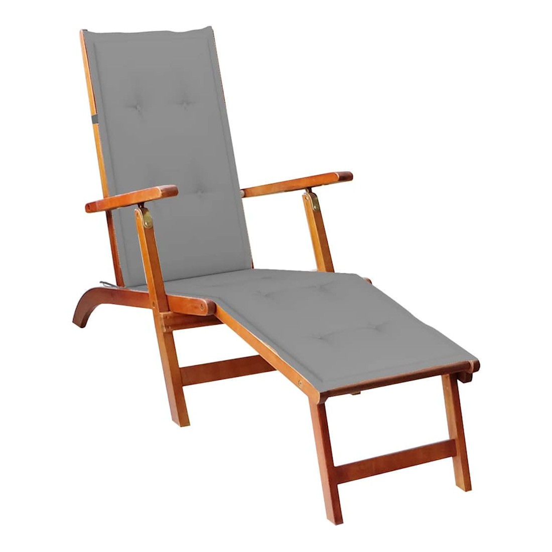 Chaise longue d'extérieur repose-pied et coussin Acacia solide