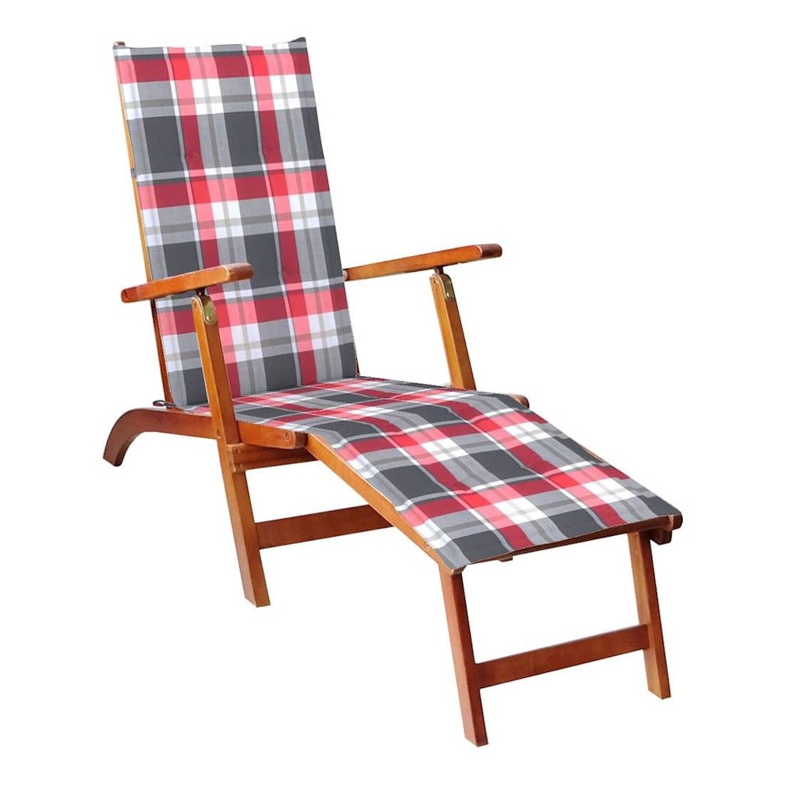 Chaise longue d'extérieur repose-pied et coussin Acacia solide