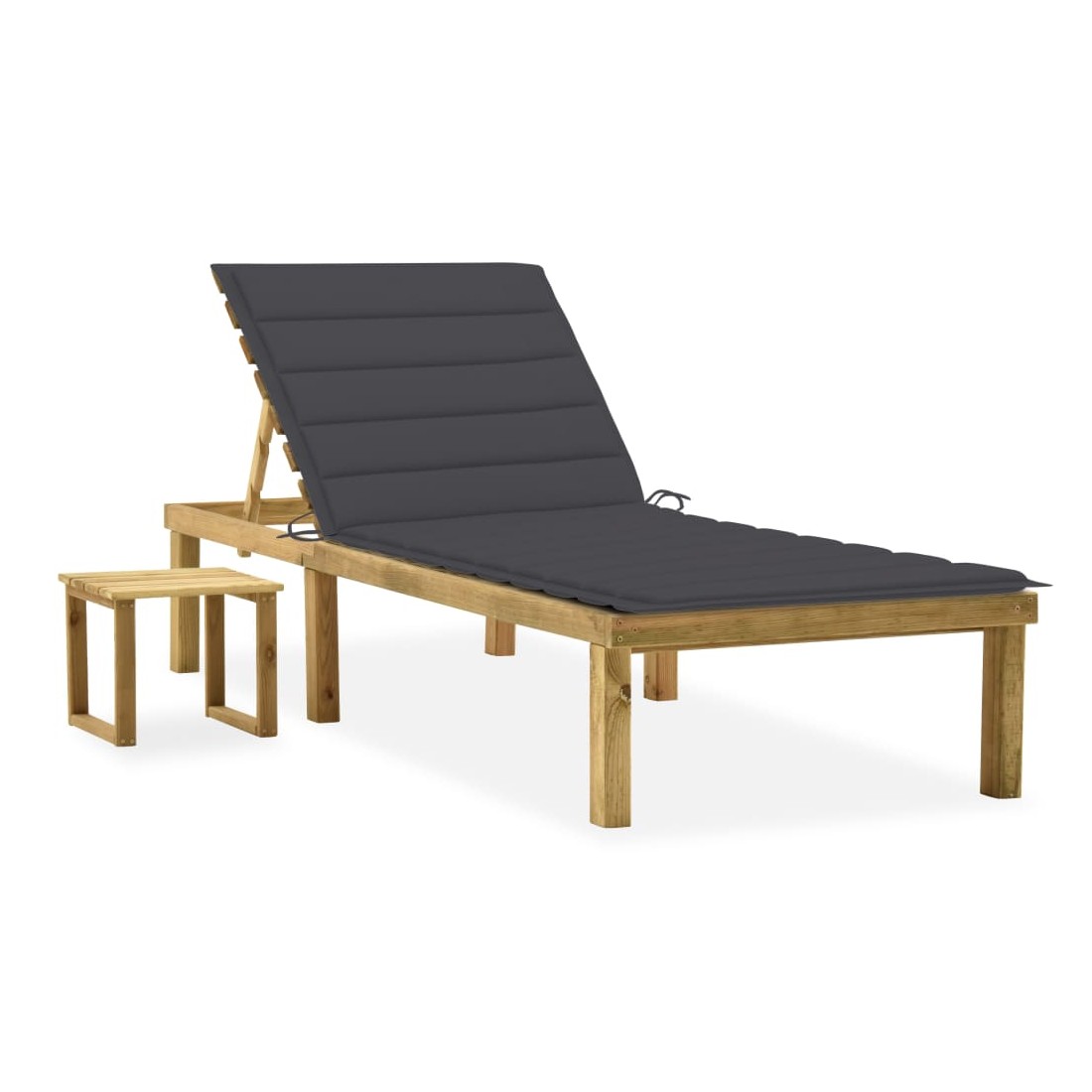 Chaise longue de jardin avec table et coussin Pin imprégné
