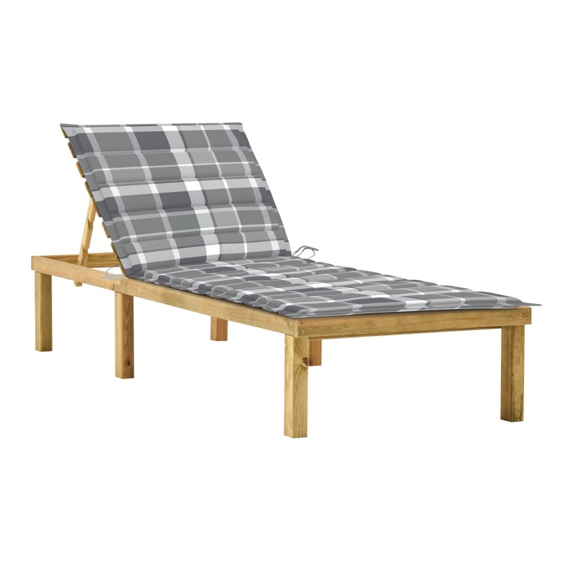 Chaise longue avec coussin carreaux gris Bois de pin imprégné
