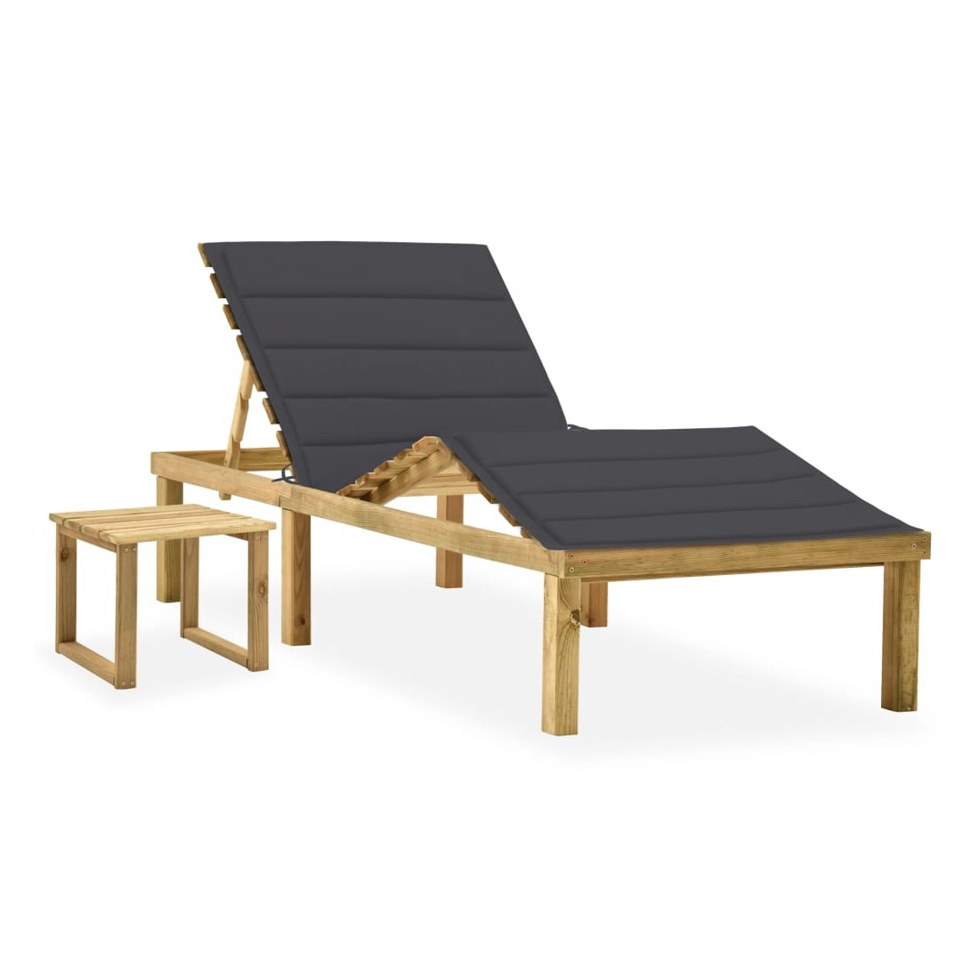 Chaise longue de jardin avec table et coussin Pin imprégné