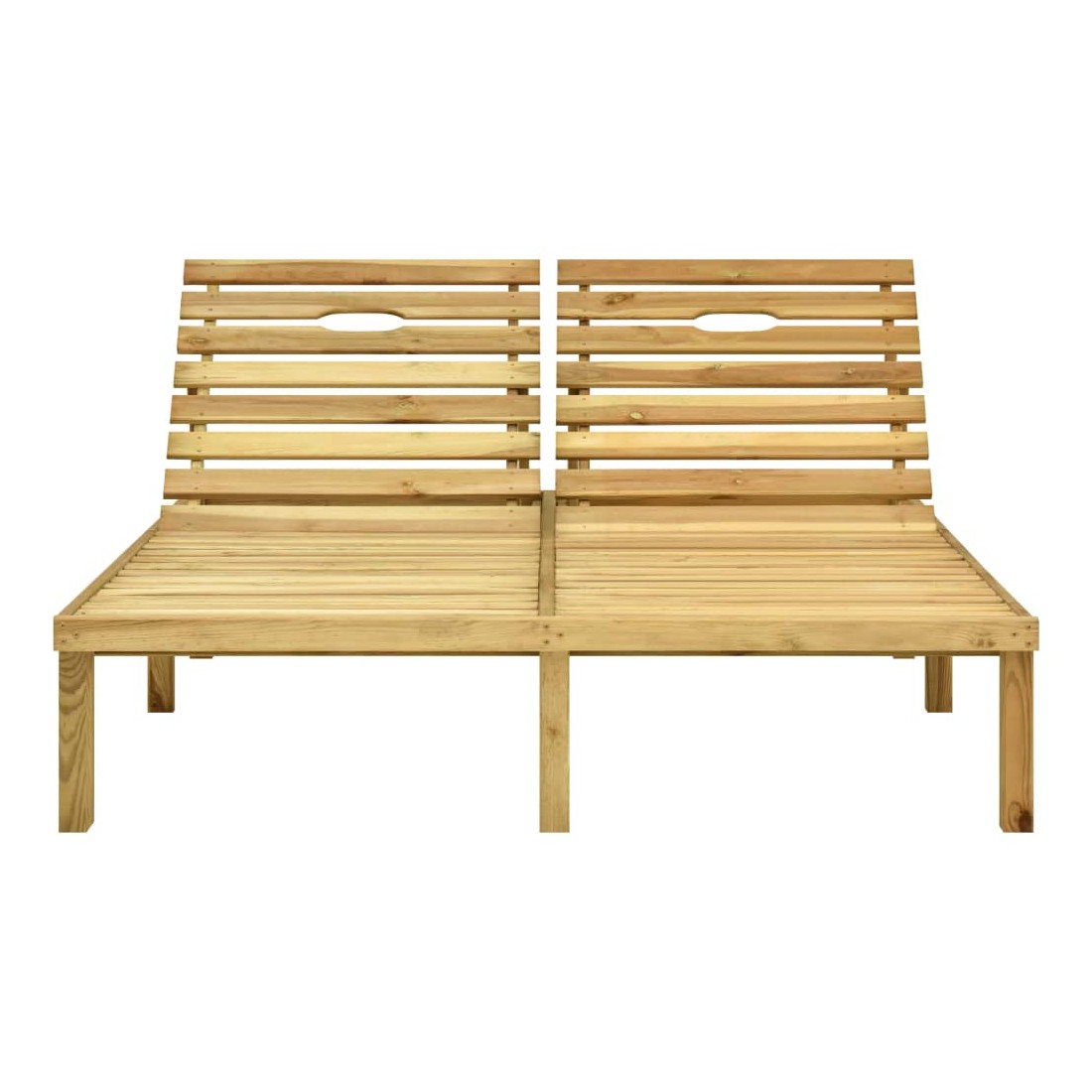 Cette chaise longue double en bois avec coussin combine style et fonctionnalité et ajoute une touche de charme rustique à votre espace de vie extérieur. Fabriqué en bois de pin imprégné, le transat pour 2 personnes est résistant aux intempéries, très durable et facile à nettoyer avec un chiffon humide. Le dossier est réglable afin que vous puissiez trouver la position la plus confortable. De plus, le coussin inclus est plus qu’un supplément pratique ; il a également une fonction décorative. Remarque : afin de prolonger la durée de vie des meubles d'extérieur, nous vous recommandons de les protéger avec une housse imperméable.