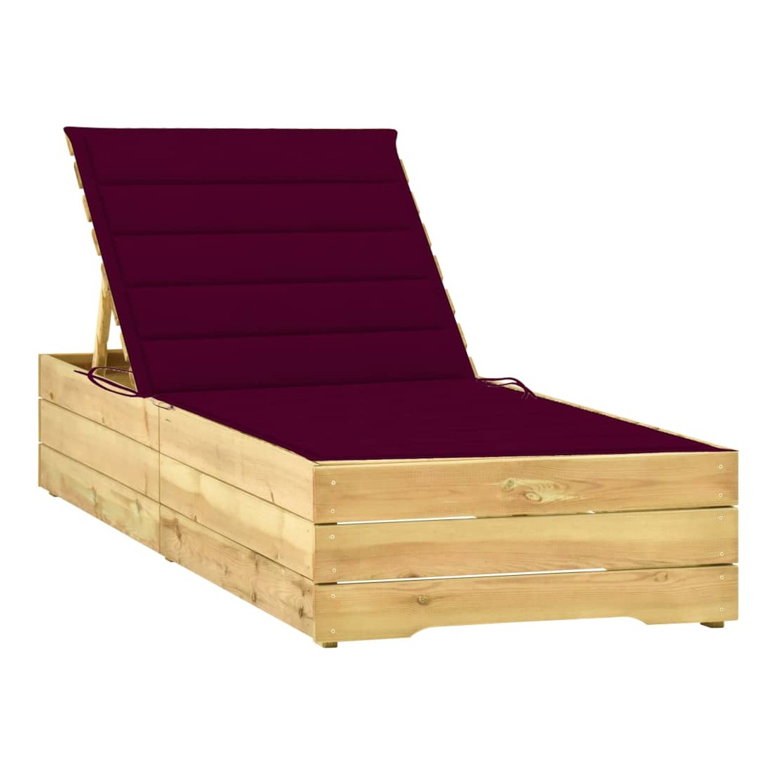 Chaise longue avec coussin bordeaux Bois de pin imprégné