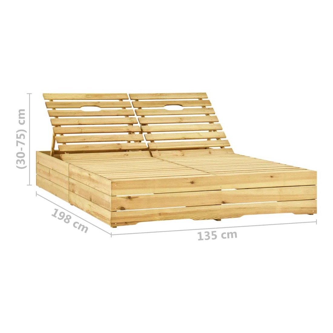 - Dimensions de la chaise longue : 198 x 135 x (30-75) cm (L x l x H)