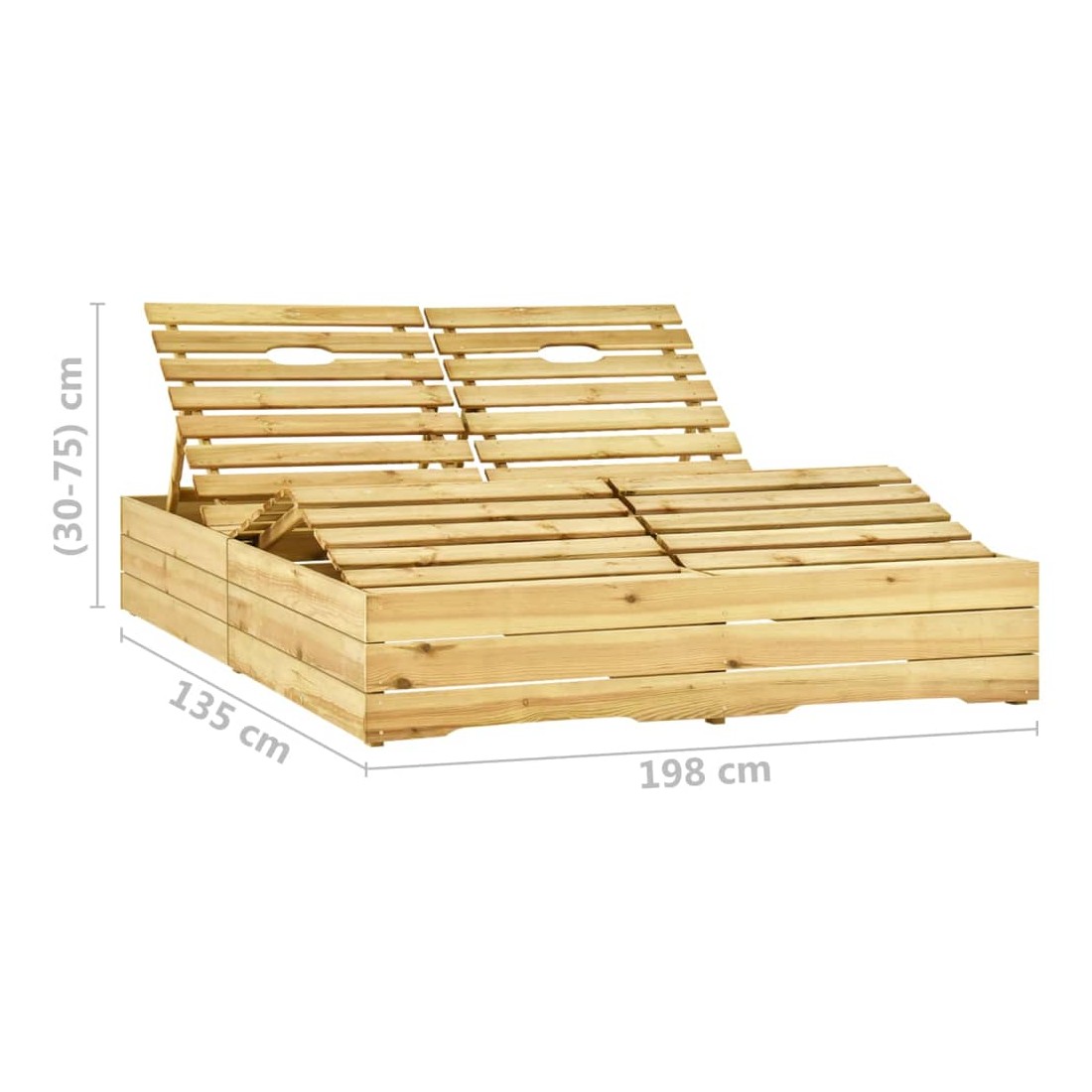 • Dimensions de la chaise longue : 198 x 135 x (30-75) cm (L x l x H)