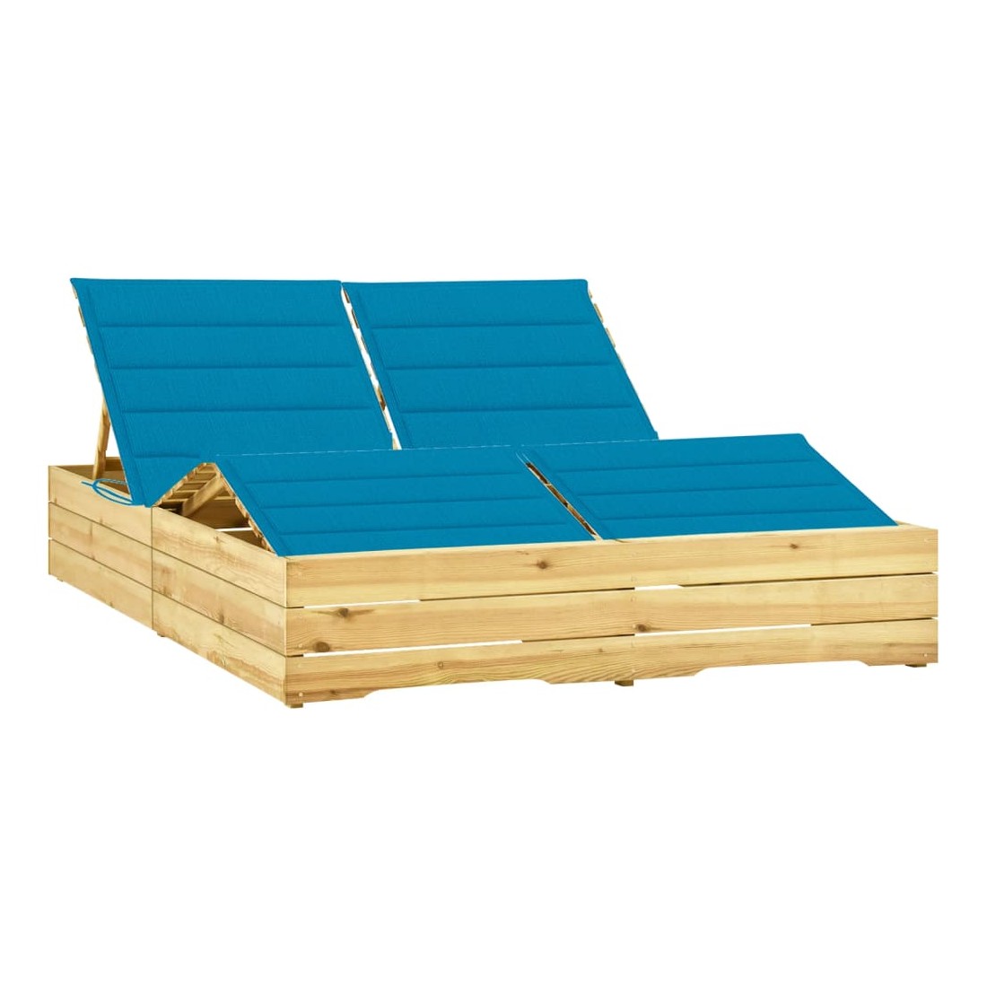 Cette chaise longue double en bois avec coussin combine style et fonctionnalité et ajoute une touche de charme rustique à votre espace de vie extérieur. Fabriqué en bois de pin imprégné, le transat pour 2 personnes est résistant aux intempéries, très durable et facile à nettoyer avec un chiffon humide. Le dossier et le repose-pied sont réglables afin que vous puissiez trouver la position la plus confortable. De plus, le coussin inclus est plus qu’un supplément pratique ; il a également une fonction décorative. Remarque : afin de prolonger la durée de vie des meubles d'extérieur, nous vous recommandons de les protéger avec une housse imperméable.