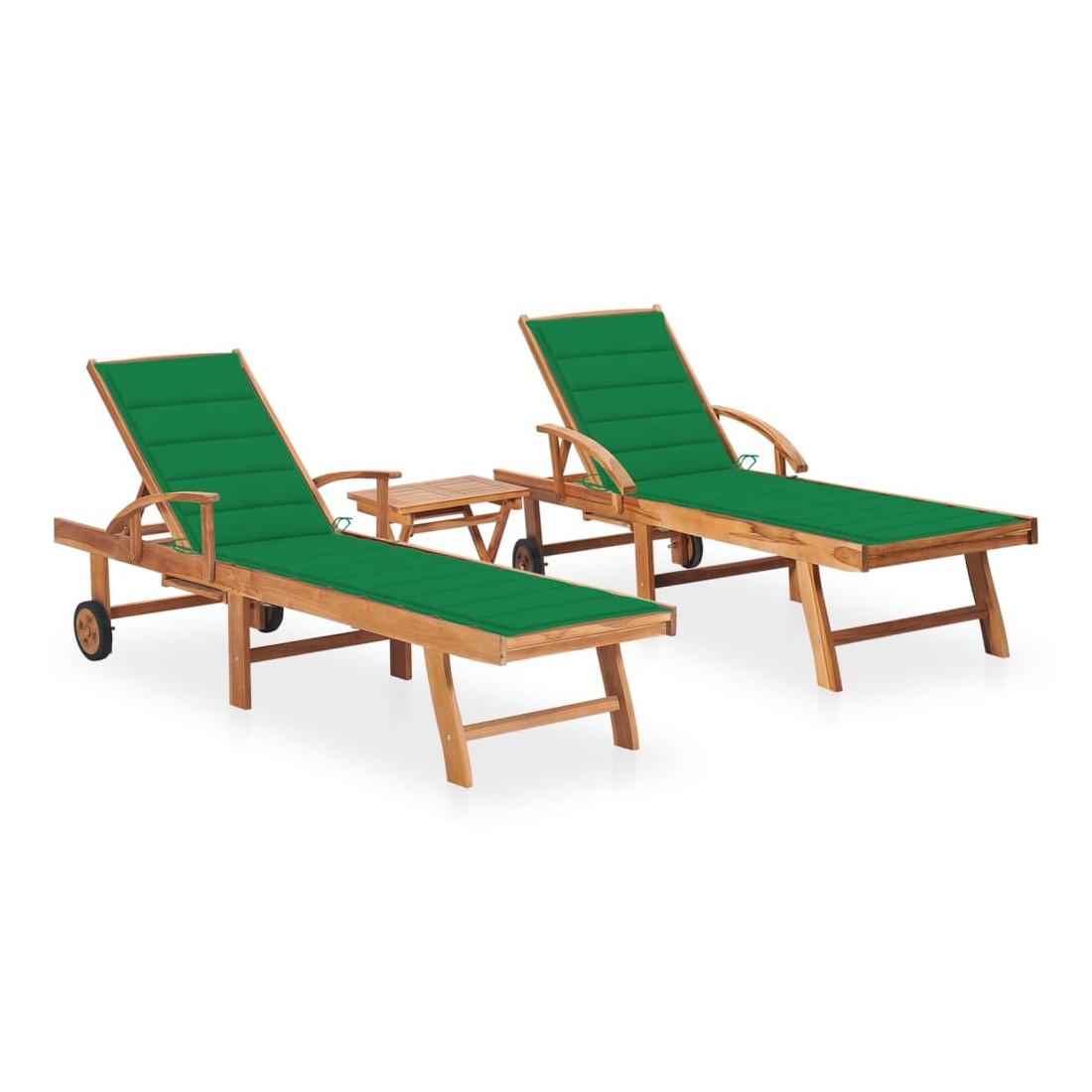 Avec ces chaises longues en bois, vous aurez toujours un endroit confortable pour vous détendre sur votre terrasse ou dans votre jardin. La structure en bois unique dégage un charme naturel. Fabriquée en bois dur de teck extrêmement durable, cette pièce de meuble en teck a été chevronnée, séchée au four puis finement poncée pour lui donner un aspect très lisse. Le bois de teck est connu pour sa résistance exceptionnelle aux intempéries, ce qui le rend bien plus adapté aux meubles de jardin que tout autre type de bois. Le bois de teck est le choix idéal si vous souhaitez acheter une pièce de meubles de jardin durable. Équipée de 2 roues, la chaise longue d'extérieur peut être déplacée facilement. Le dossier peut être réglable en 3 positions, de la position assise entièrement droite à la position complètement à plat. Le marchepied est également réglable pour plus de confort. Les lattes du siège et du dossier offrent également un excellent soutien et un grand confort, et deux accoudoirs offrent un endroit pour reposer vos bras. De plus, la table d'appoint vous permet de placer vos téléphones, lunettes de soleil, boissons, ainsi que d'autres petits objets à portée de main. Le coussin inclus est plus qu'un supplément pratique ; il a également une fonction décorative. Remarque : afin de prolonger la durée de vie des meubles d'extérieur, nous vous recommandons de les protéger avec une housse imperméable.