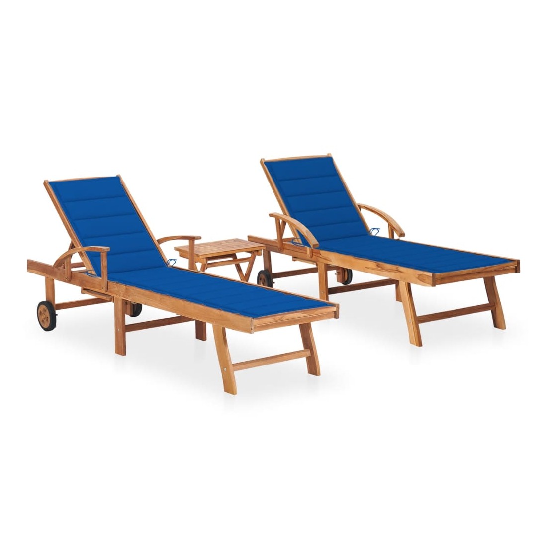 Chaises longues lot de 2 avec table et coussin Bois teck solide