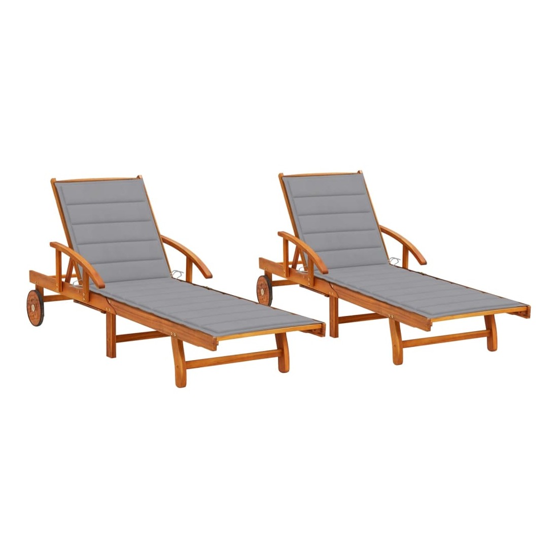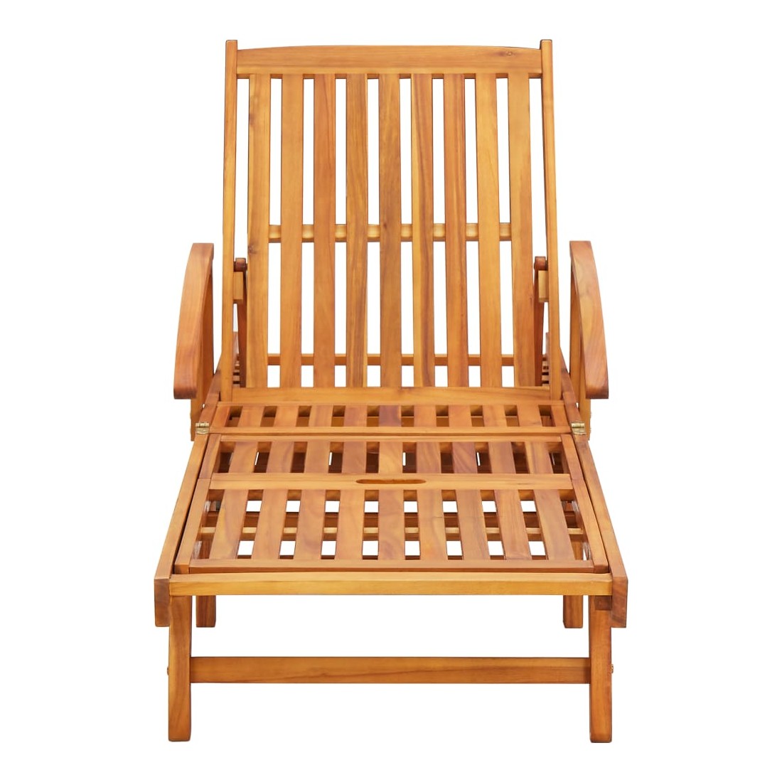 Cet ensemble de chaises longues en bois allie style et fonctionnalité et ajoutera une touche de charme rustique à votre jardin, terrasse, terrasse de piscine ou autre espace de vie extérieur. Construite en bois d’acacia massif, la chaise longue est résistante aux intempéries, durable et convient à un usage extérieur. Équipée de roues, elle peut être facilement déplacée. Le dossier et le repose-pied sont réglables de la position complètement verticale à la position complètement à plat, ce qui vous offre le plus grand confort. Le lit de jour peut être replié lorsqu'il n'est pas utilisé. Le coussin inclus est plus qu’un supplément pratique; il a également une fonction décorative. Remarque : afin de prolonger la durée de vie des meubles d'extérieur, nous vous recommandons de les protéger avec une housse imperméable.