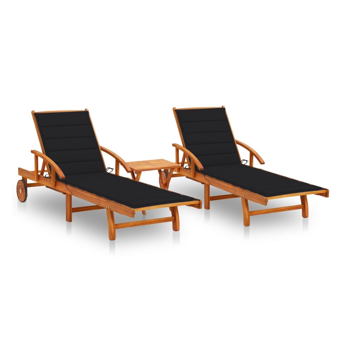 Chaises longues lot de 2 avec table et coussins Acacia solide