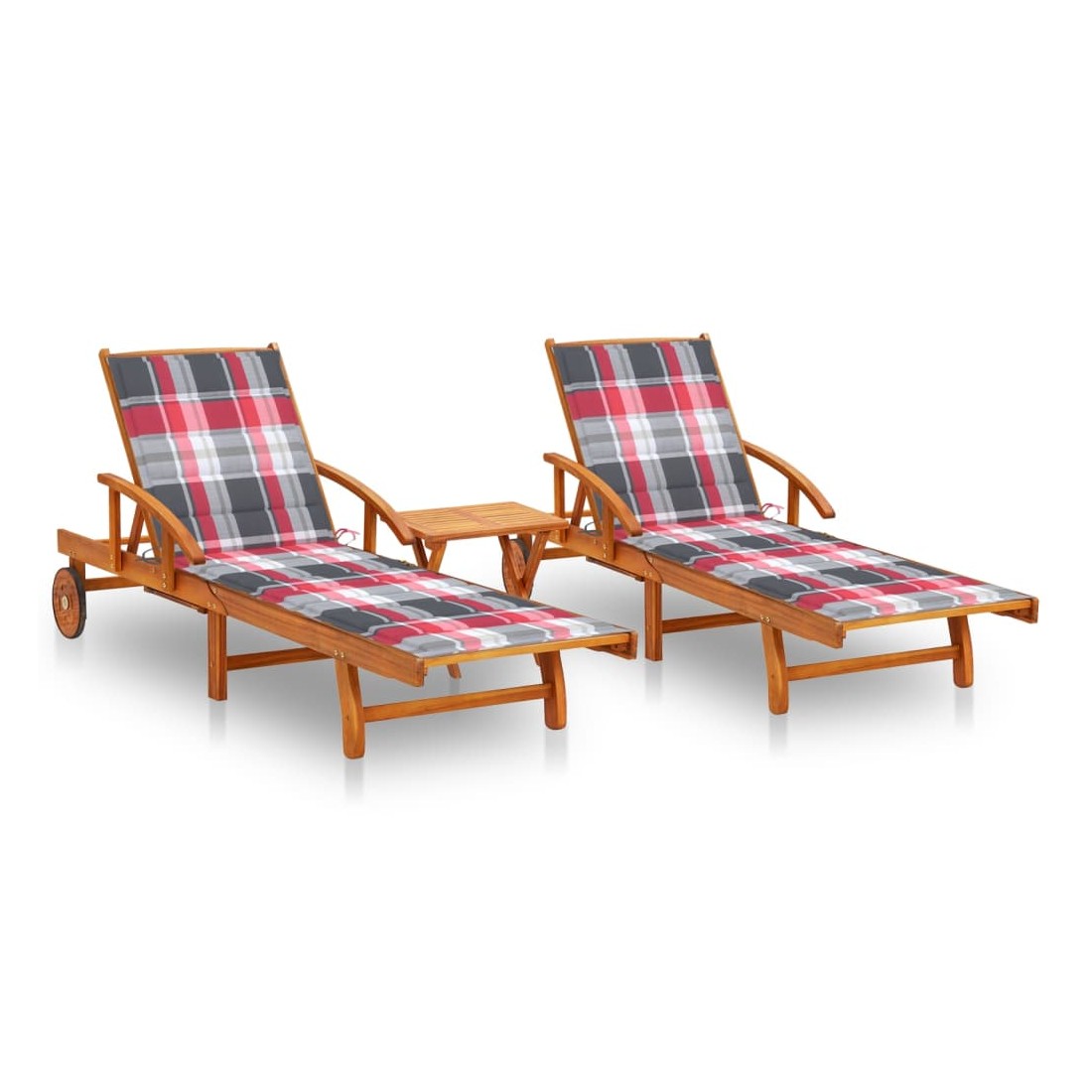 Chaises longues lot de 2 avec table et coussins Acacia solide