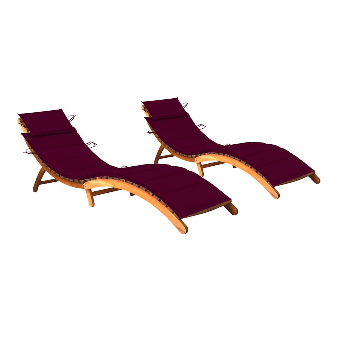 Avec cet ensemble de 2 chaises longues en bois, vous aurez toujours un endroit confortable pour vous détendre sur votre terrasse ou dans votre jardin. La structure en bois unique est invitante et dégage un charme naturel. La chaise longue est en bois d'acacia massif, résistant aux intempéries et durable. Comme il est résistant à l'eau, le lit de bronzage convient aussi bien à une utilisation en plein air. Le lit de repos peut être replié pour économiser de l'espace de rangement lorsqu'il n'est pas utilisé. Le coussin inclus est plus qu'un supplément pratique ; il a également une fonction décorative. Remarque : afin de prolonger la durée de vie des meubles d'extérieur, nous vous recommandons de les protéger avec une housse imperméable.