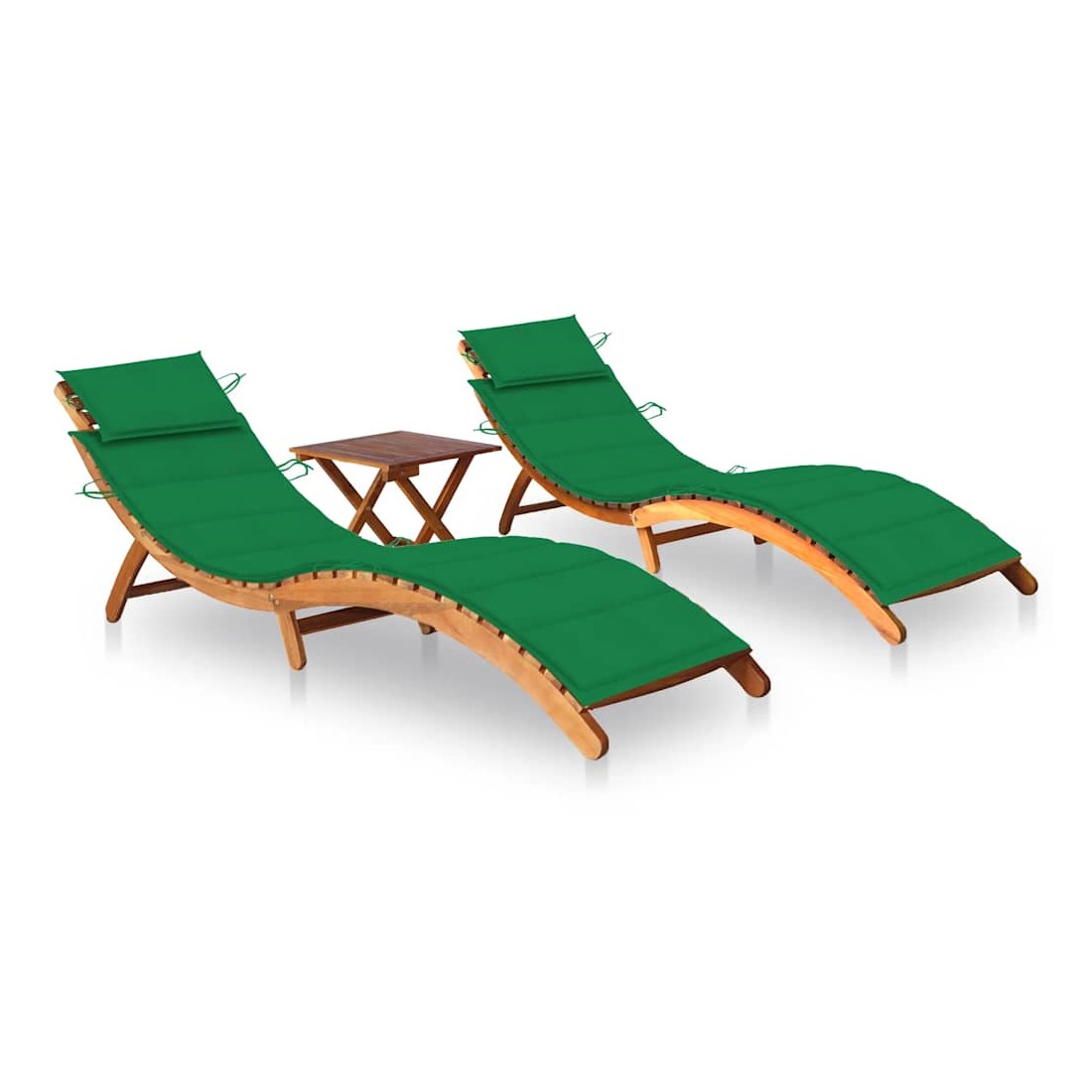 Avec cet ensemble de 2 chaises longues en bois et d'une table, vous aurez toujours un endroit confortable pour vous détendre sur votre terrasse ou dans votre jardin. La structure en bois unique est invitante et dégage un charme naturel. La chaise longue est en bois d'acacia massif, résistant aux intempéries et durable. Comme il est résistant à l'eau, le lit de bronzage convient aussi bien à une utilisation à l'intérieur et à l'extérieur. Le lit de repos peut être replié pour économiser de l'espace de rangement lorsqu'il n'est pas utilisé. Vous pouvez garder vos boissons, téléphones, livres ou autres petits objets à portée de main sur la table en bois. Le coussin inclus est plus qu'un supplément pratique ; il a également une fonction décorative. Remarque : afin de prolonger la durée de vie des meubles d'extérieur, nous vous recommandons de les protéger avec une housse imperméable.