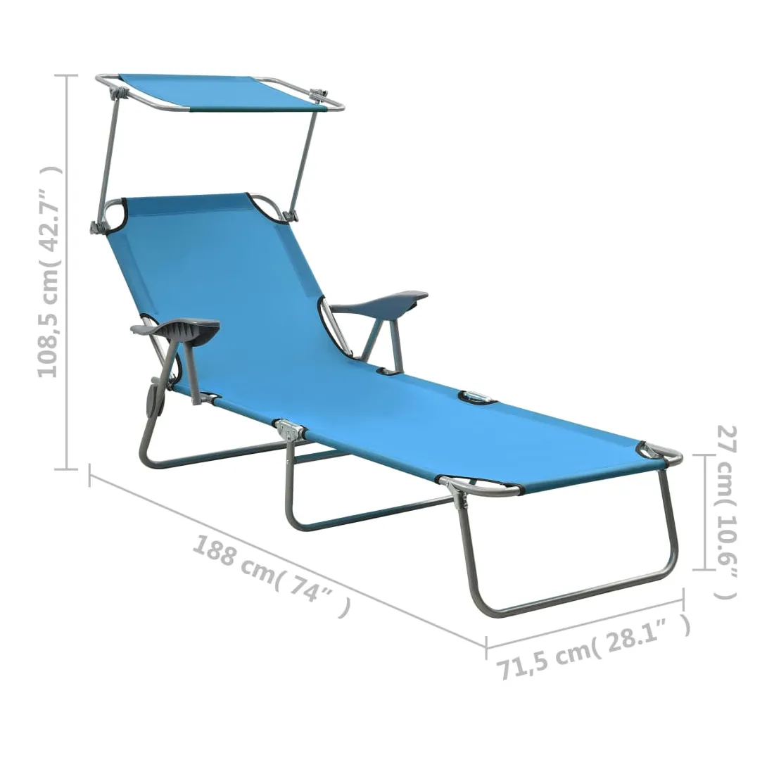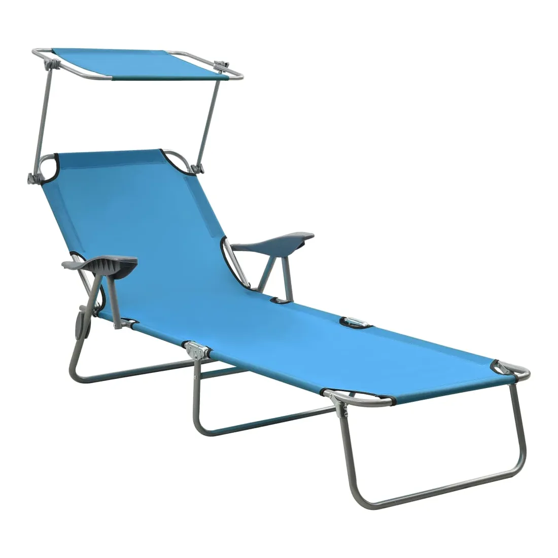 Cette chaise longue tendance avec auvent est un choix parfait pour vous détendre et profiter du beau temps dans le jardin ou sur la plage. Ce lit de jour pliable est équipé d'un auvent réglable, vous n'aurez donc jamais à vous soucier de la lumière directe du soleil lorsque vous prenez un bain de soleil. Le dossier est réglable. Par conséquent, vous pouvez toujours trouver la position la plus confortable. Ce lit de plage est fait d'acier enduit de poudre qui le rend robuste et résistant aux intempéries. Grâce à sa conception pliante, le lit de jour peut être facilement rangé lorsqu'il n'est pas utilisé. Il est également léger, ce qui le rend pratique à transporter.