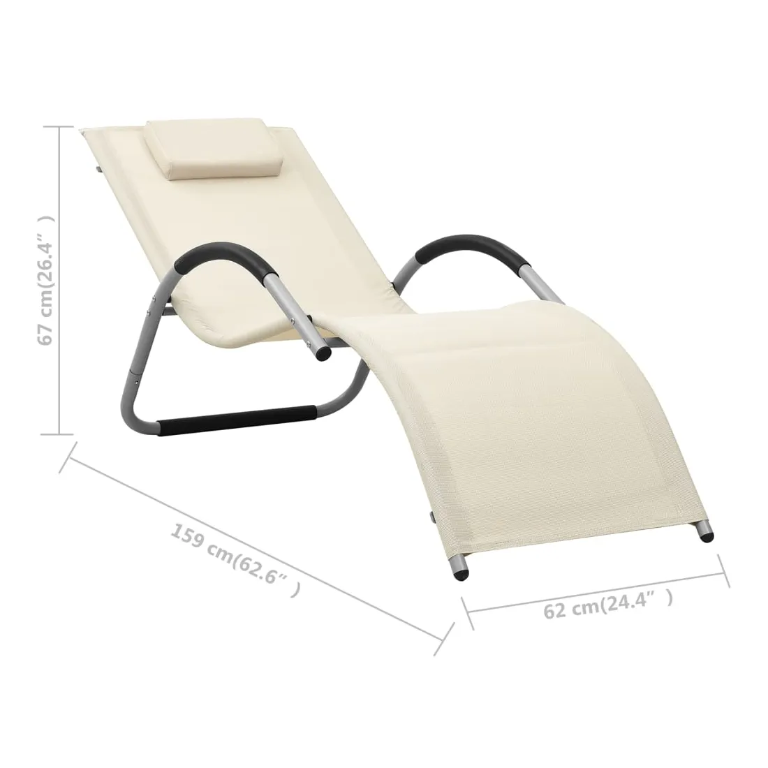 Cette chaise longue en aluminium au design élégant sera un choix idéal pour vous détendre et profiter d'une journée dans le jardin ou sur la plage. Fabriqué en textilène, cette chaise longue est résistante aux intempéries. Le cadre en acier et en aluminium enduit de poudre rend également la chaise longue de jardin robuste et durable. Le transat est équipé d’un oreiller, offrant le plus grand confort d’assise. Remarque : afin de prolonger la durée de vie des meubles d'extérieur, nous vous recommandons de les protéger avec une housse imperméable.