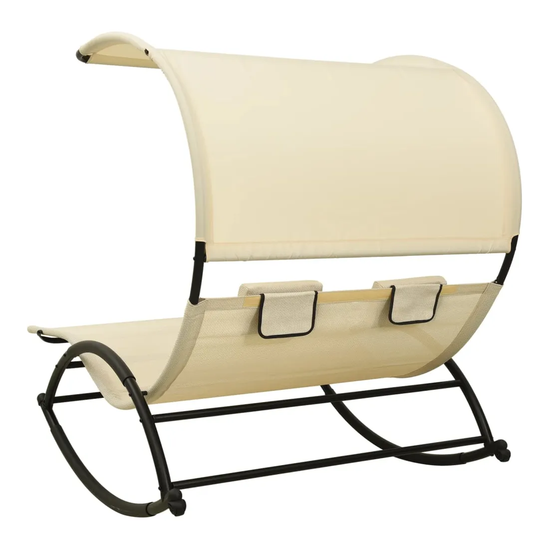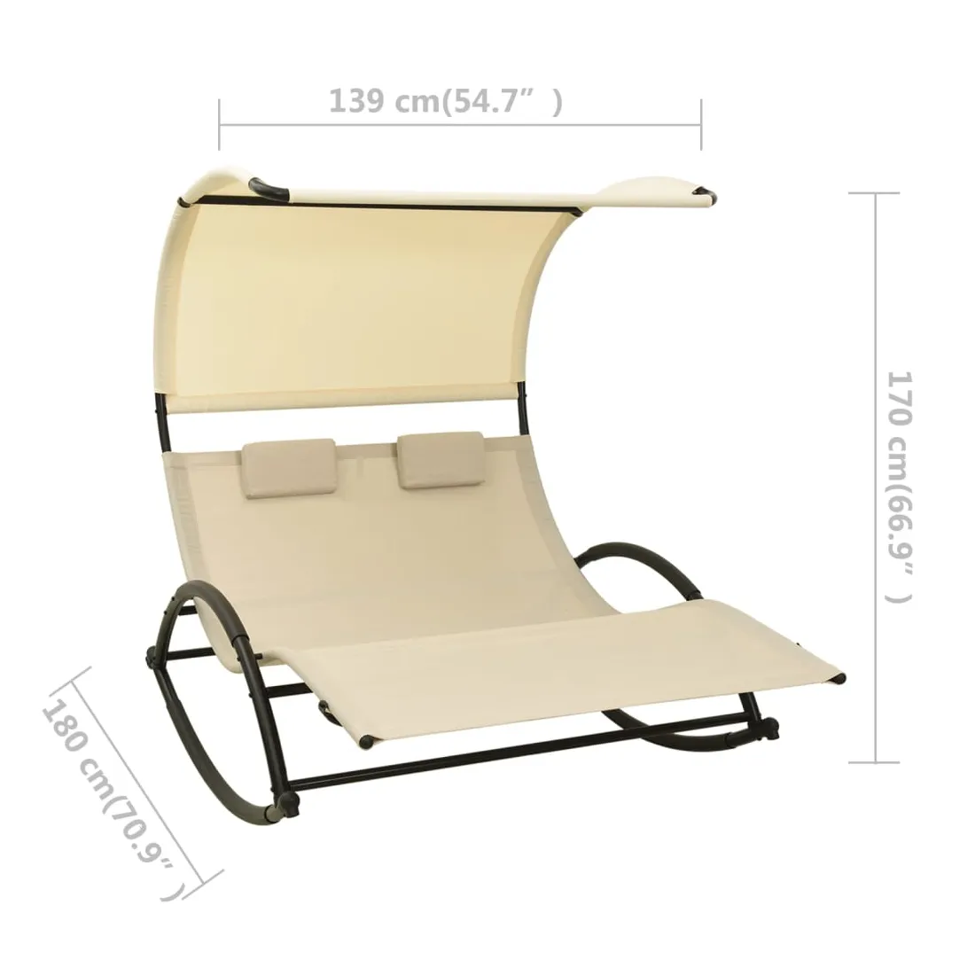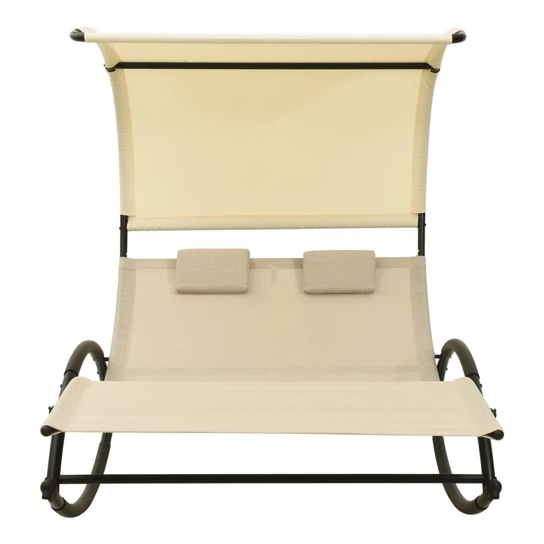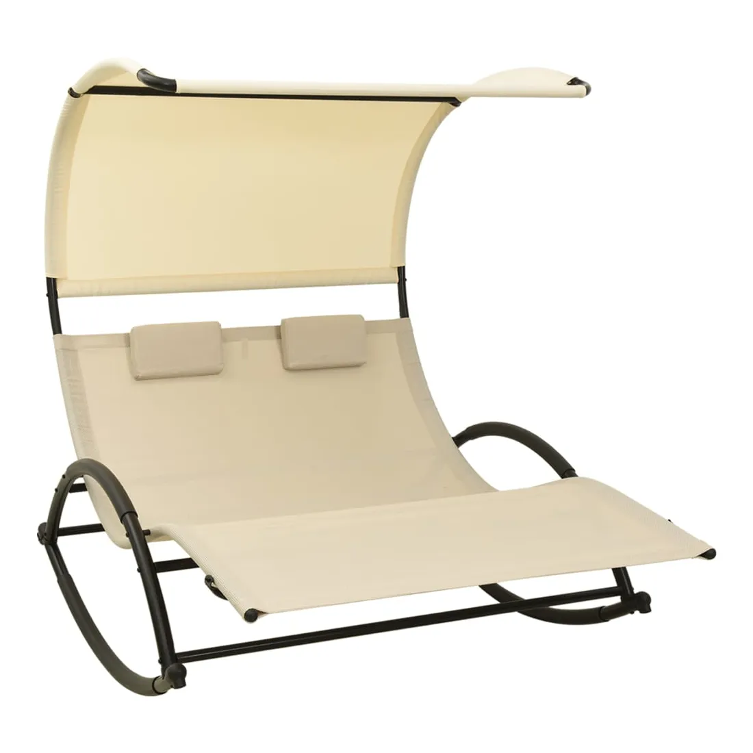Que vous souhaitiez vous détendre seul ou en couple, cette chaise longue double est un excellent choix, idéale pour l’extérieur. Ce transat à bascule dispose d’un cadre en acier robuste, qui apporte une super stabilité et assure une longue durée de vie de service. Le lit de repos est conçu avec un tissu textilène fort et respirant, offrant le confort suprême pendant votre temps de détente. Les deux petits oreillers inclus ajoutent un confort supplémentaire. De plus, l'auvent vous protège contre les rayons UV nocifs. Remarque : afin de prolonger la durée de vie des meubles d'extérieur, nous vous recommandons de les protéger avec une housse imperméable.