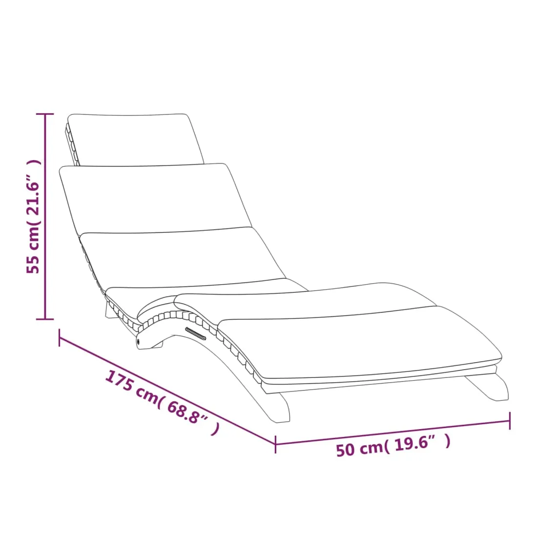 - Dimensions de la chaise longue (dépliées) : 175 x 50 x 55 cm (L x l x H)