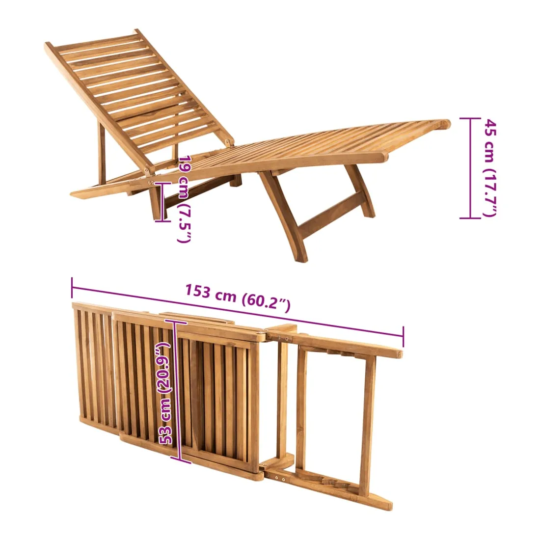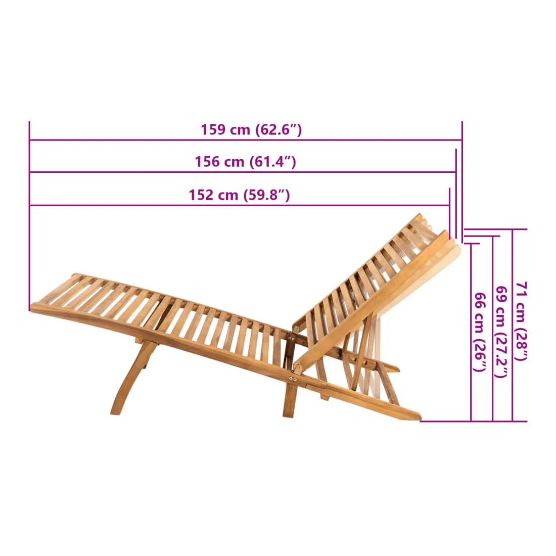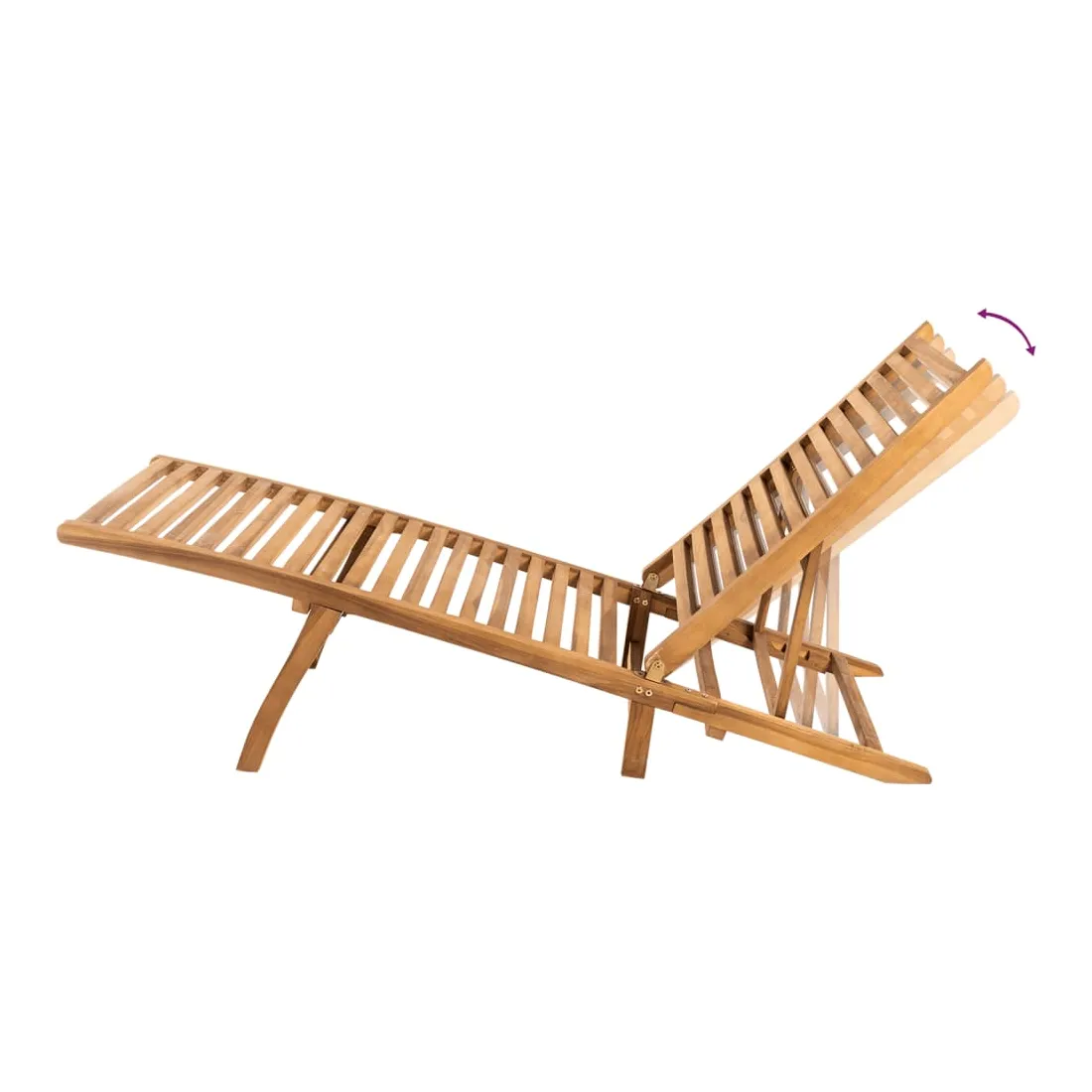 Cette chaise longue en bois, dotée d’un dossier réglable, ajoute une touche de charme rustique à votre jardin ou à tout espace extérieur. Fabriquée en bois dur de teck extrêmement durable, cette pièce de meuble en teck a été chevronnée, séchée au four puis finement poncée pour lui donner un aspect très lisse. Le bois de teck est connu pour sa résistance exceptionnelle aux intempéries, ce qui le rend bien plus adapté aux meubles de jardin que tout autre type de bois. Le bois de teck est le choix idéal si vous souhaitez acheter un meuble de jardin durable. La chaise longue a une position réglable pour que vous puissiez toujours trouver la position appropriée. De plus, la chaise longue peut être pliée pour économiser de l’espace. Remarque : afin de prolonger la durée de vie des meubles d'extérieur, nous vous recommandons de les protéger avec une housse imperméable.