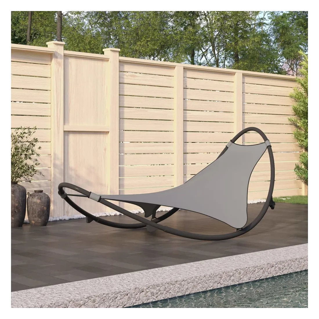 Chaise longue à bascule avec roues Acier et textilène Gris