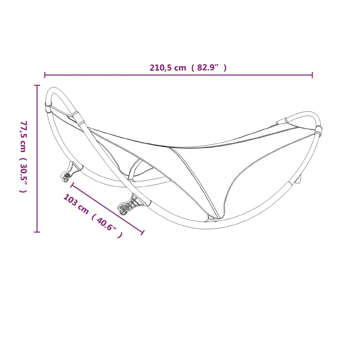 - Dimensions totales : 210,5 x 103 x 77,5 cm (L x l x H)