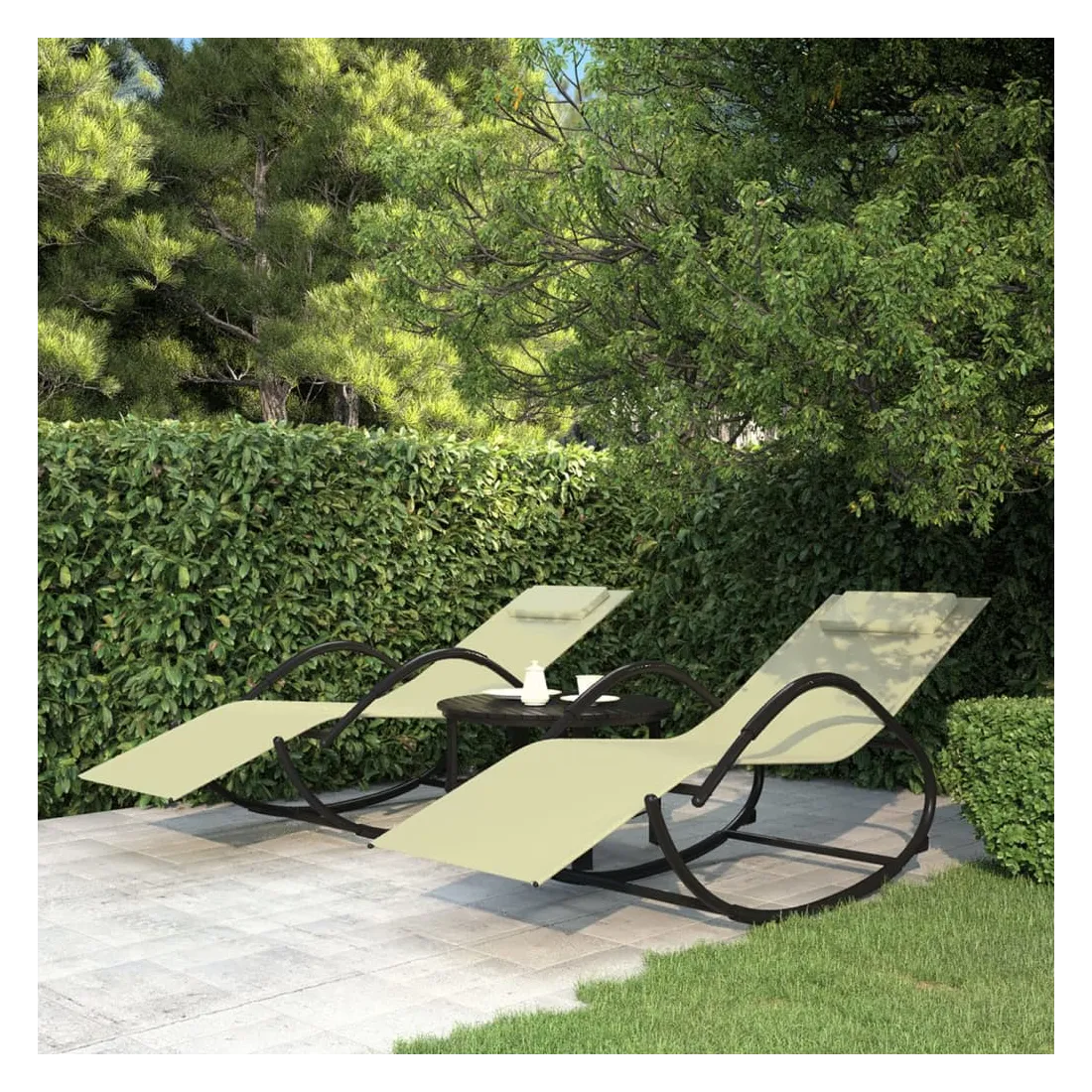 Prenez une pause de votre vie quotidienne trépidante sur ces chaises longues à bascule pratiques ! Ces chaises à bascule sont un excellent compagnon de loisirs et de vacances pour vous détendre et profiter du beau temps. Dotée d'une surface de couchage de forme ergonomique et d'un oreiller amovible, la chaise longue à bascule offre un confort optimal lorsque vous vous balancez d'avant en arrière. La chaise longue est fabriquée en acier enduit de poudre, ce qui la rend résistante à la rouille et robuste. De plus, la surface en maille textilène est respirante et facile à nettoyer avec un chiffon humide. Remarque : afin de prolonger la durée de vie des meubles d'extérieur, nous vous recommandons de les protéger avec une housse imperméable.