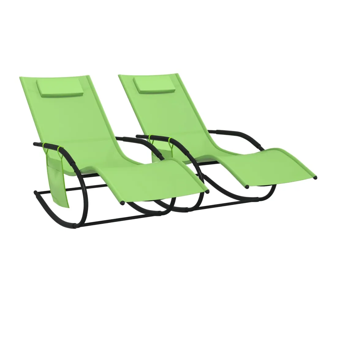 Chaises longues à bascule lot de 2 vert acier et textilène