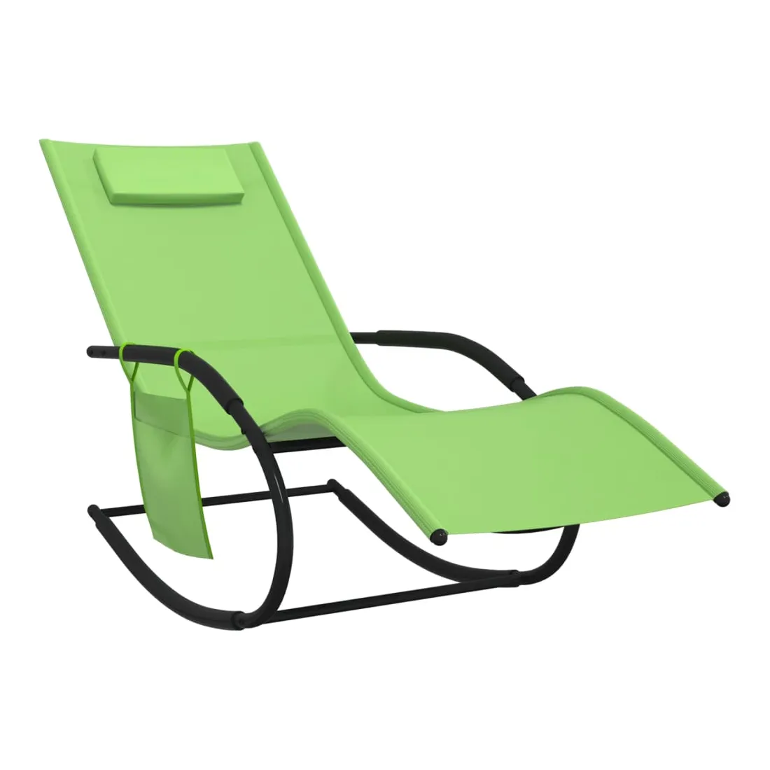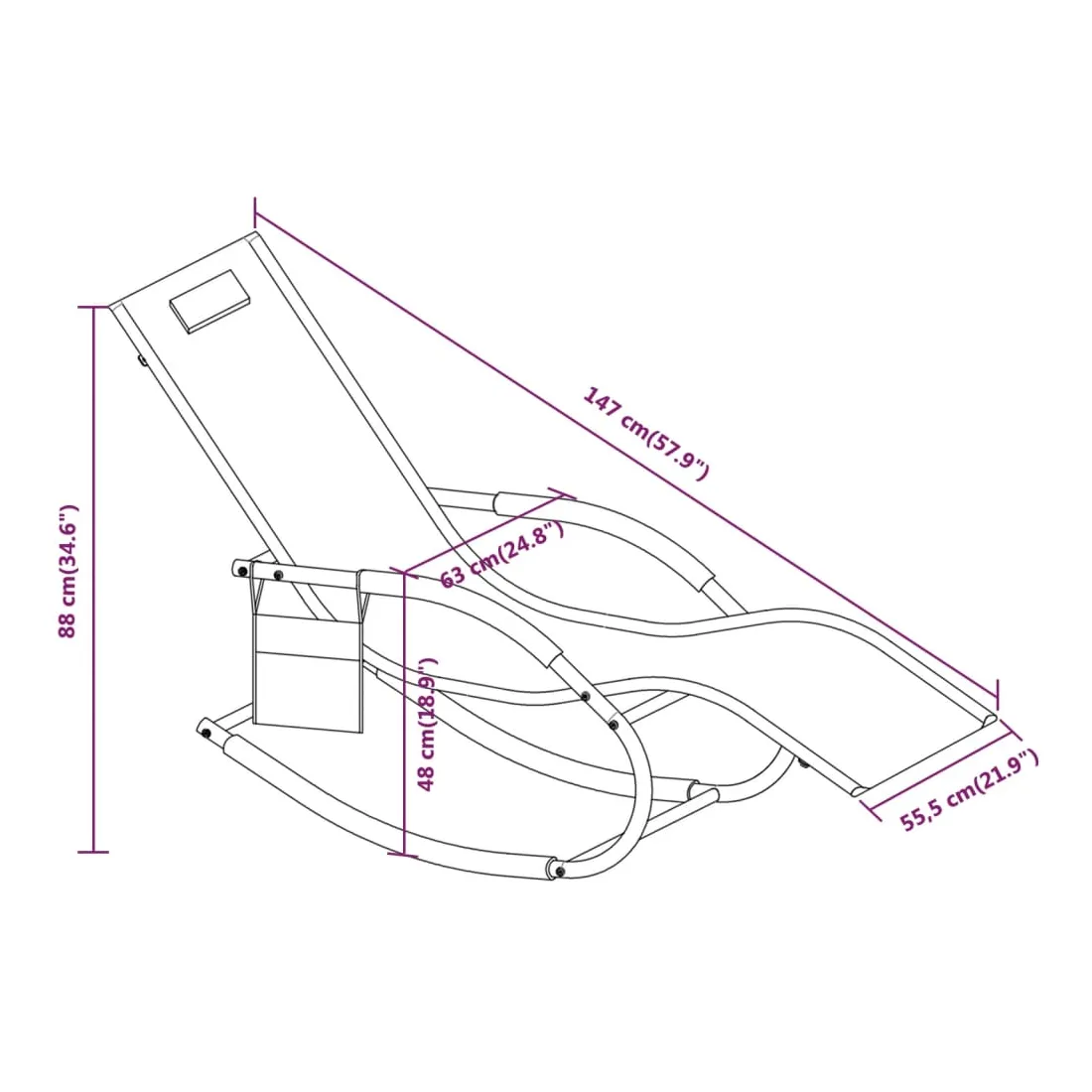 vidaXLPrenez une pause de votre vie quotidienne trépidante sur ces chaises longues à bascule pratiques ! Ces chaises à bascule sont un excellent compagnon de loisirs et de vacances pour vous détendre et profiter du beau temps. Pieds à bascule : détendez-vous en vous asseyant confortablement tout en profitant d'un mouvement de bercement doux et apaisant.Cadre robuste : la chaise longue est fabriquée en acier enduit de poudre, ce qui la rend résistante à la rouille et robuste.Design ergonomique : dotée d'une surface de couchage de forme ergonomique et d'un appui-tête amovible, la chaise longue à bascule offre le plus grand confort lorsque vous vous balancez d'avant en arrière.Tissu de qualité : la surface en maille textilène est respirante, assurant une bonne circulation de l'air et empêchant l'accumulation de sueur. Elle est également facile à nettoyer avec un chiffon humide.Poche latérale amovible : avec une poche latérale amovible pratique, vous pouvez garder les téléphones portables, les magazines et autres petits objets à portée de main. Remarque :Afin de prolonger la durée de vie de votre mobilier d'extérieur, nous vous recommandons de le protéger avec une housse imperméable.