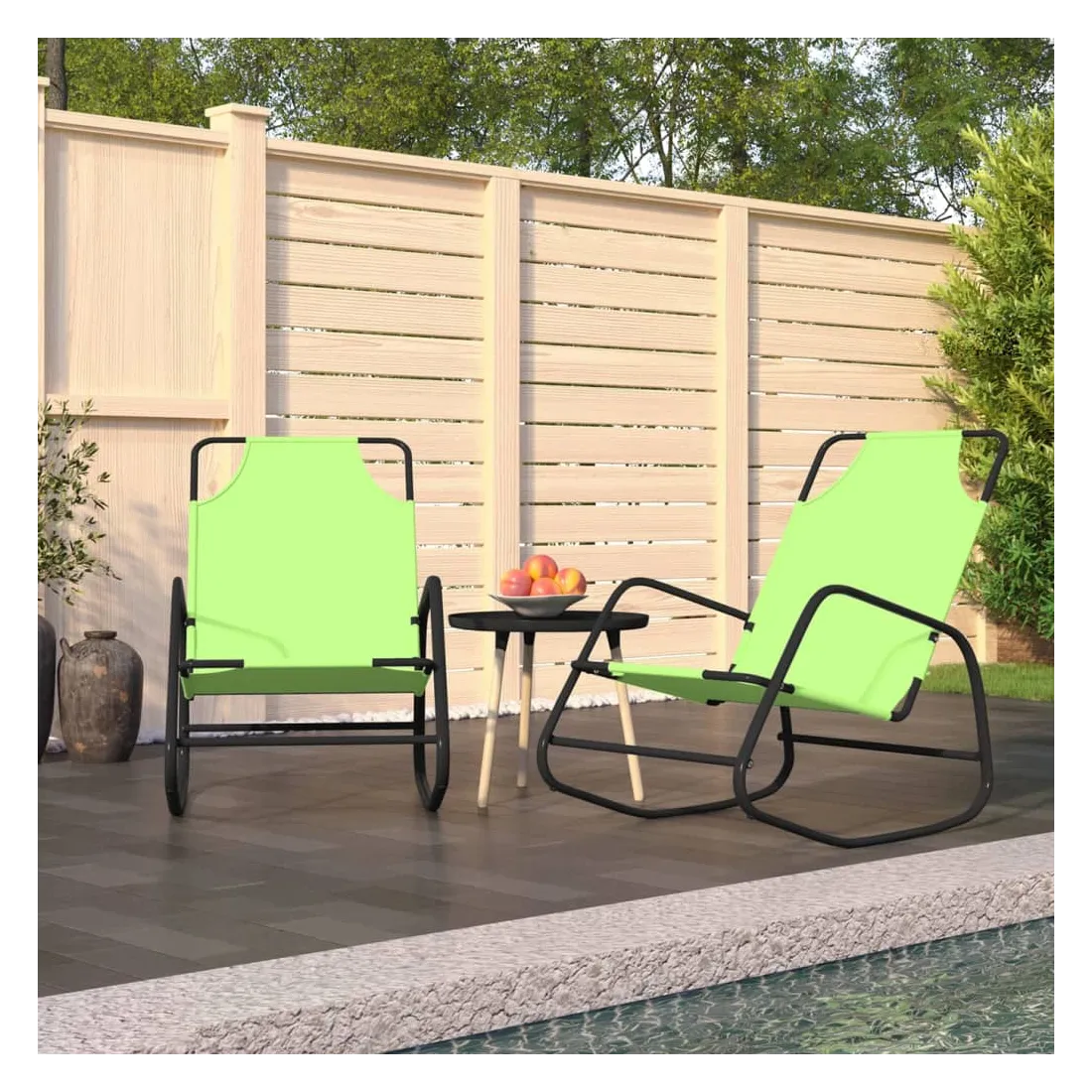 Prenez une pause de votre vie quotidienne trépidante sur ces chaises longues à bascule pratiques ! Ces chaises à bascule sont un excellent compagnon de loisirs et de vacances pour vous détendre et profiter du beau temps. Tissu de qualité : la surface en maille textilène est respirante, assurant une bonne circulation de l'air et empêchant l'accumulation de sueur. Elle est également facile à nettoyer avec un chiffon humide.Pieds à bascule : détendez-vous en vous asseyant confortablement tout en profitant d'un mouvement de bercement doux et apaisant.Cadre robuste : la chaise longue est fabriquée en acier enduit de poudre, ce qui la rend résistante à la rouille et robuste.Design confortable : dotée d'une surface de couchage confortable, la chaise longue berçante offre le plus grand confort lorsque vous vous déplacez d'avant en arrière. Remarque :Afin de prolonger la durée de vie de votre mobilier d'extérieur, nous vous recommandons de le protéger avec une housse imperméable.