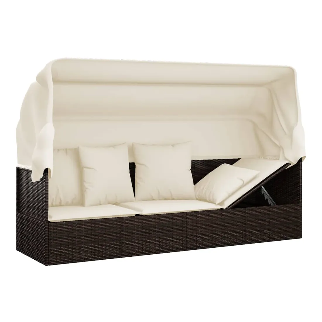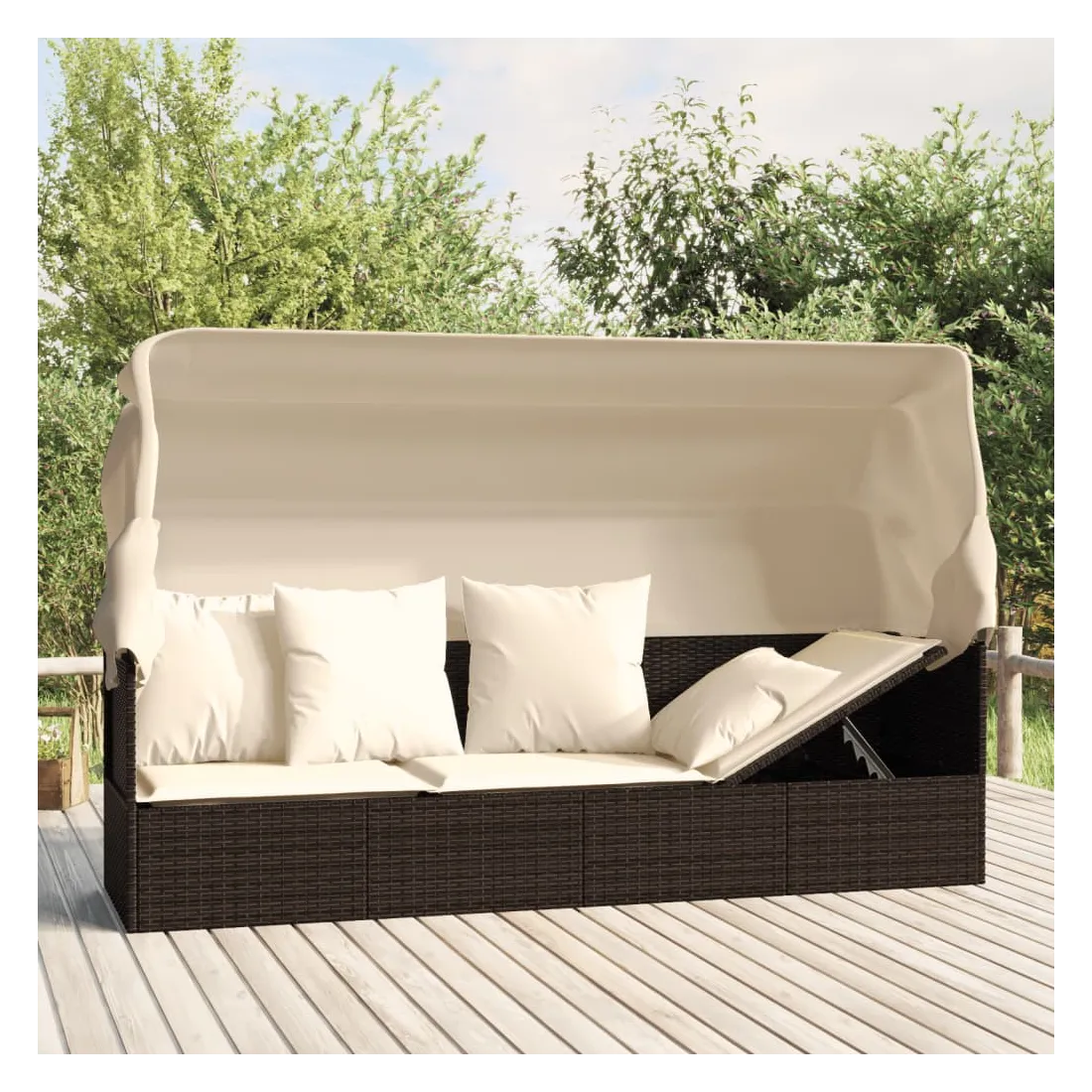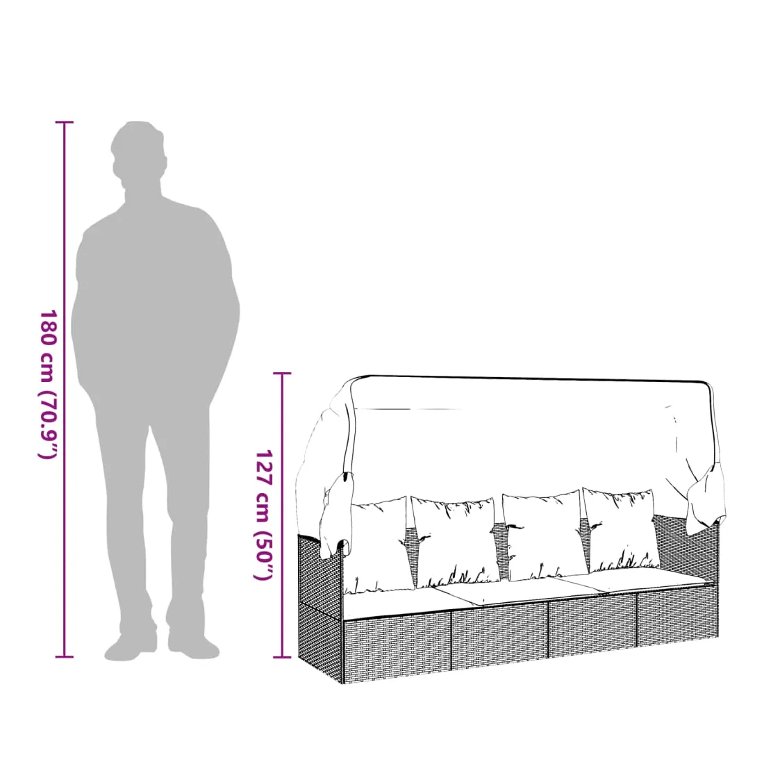 Ce lit de salon d'extérieur confortable avec toit et coussins est une combinaison parfaite de style et de fonctionnalité. Matériau haut de gamme : la résine tressée est un matériau de résistance exceptionnelle et durable dans différentes conditions météorologiques.Toit pliable : vous pouvez facilement régler le toit en fonction de vos besoins. Ouvrez le toit pour profiter de la lumière du soleil et fermez-le pour vous détendre à l'ombre. Il bloque efficacement les rayons UV nocifs et protège votre peau délicate des coups de soleil.Cadre stable : le cadre en acier enduit de poudre assure la robustesse et la stabilité.Design flexible : les deux côtés du lit de bronzage peuvent être ajustés de haut en bas pour une position assise ou couchée plus confortable.Expérience de siège confortable : des coussins supplémentaires sont inclus pour votre confort. Remarque :Afin de prolonger la durée de vie de votre mobilier d'extérieur, nous vous recommandons de le protéger avec une housse imperméable.Chaque produit est livré avec un manuel de montage dans la boîte pour un montage facile.