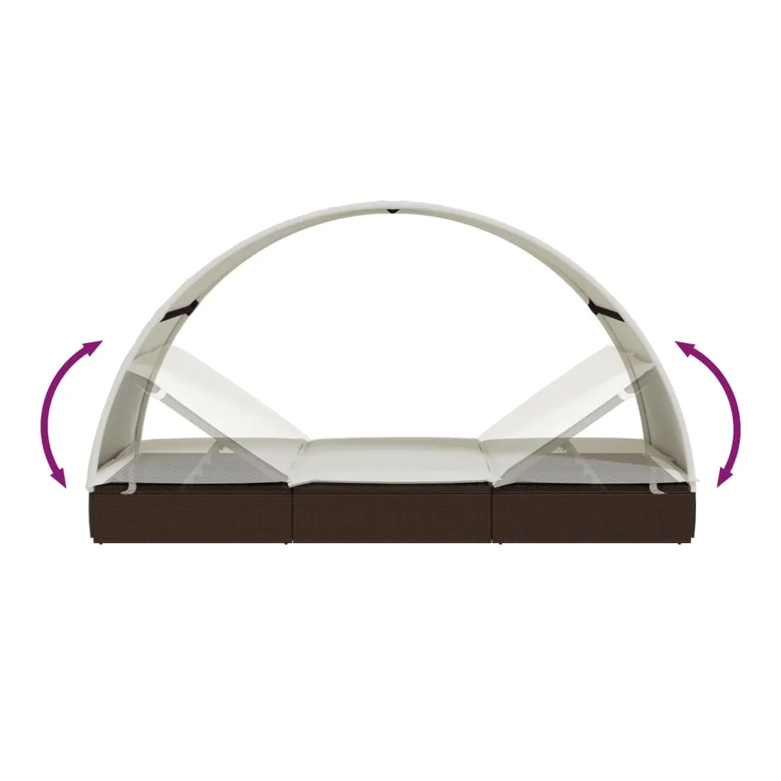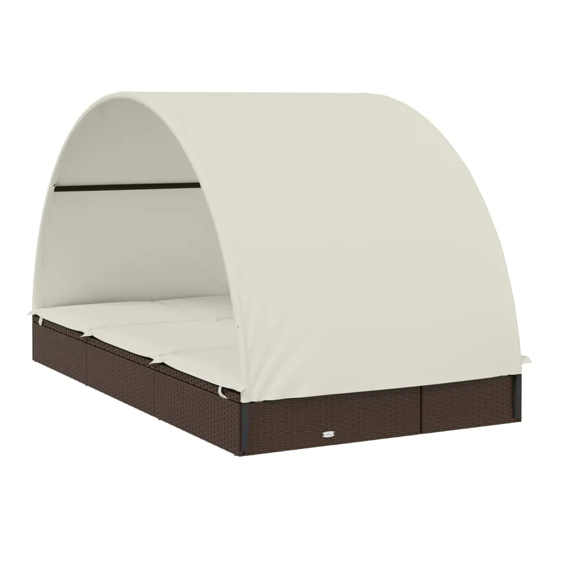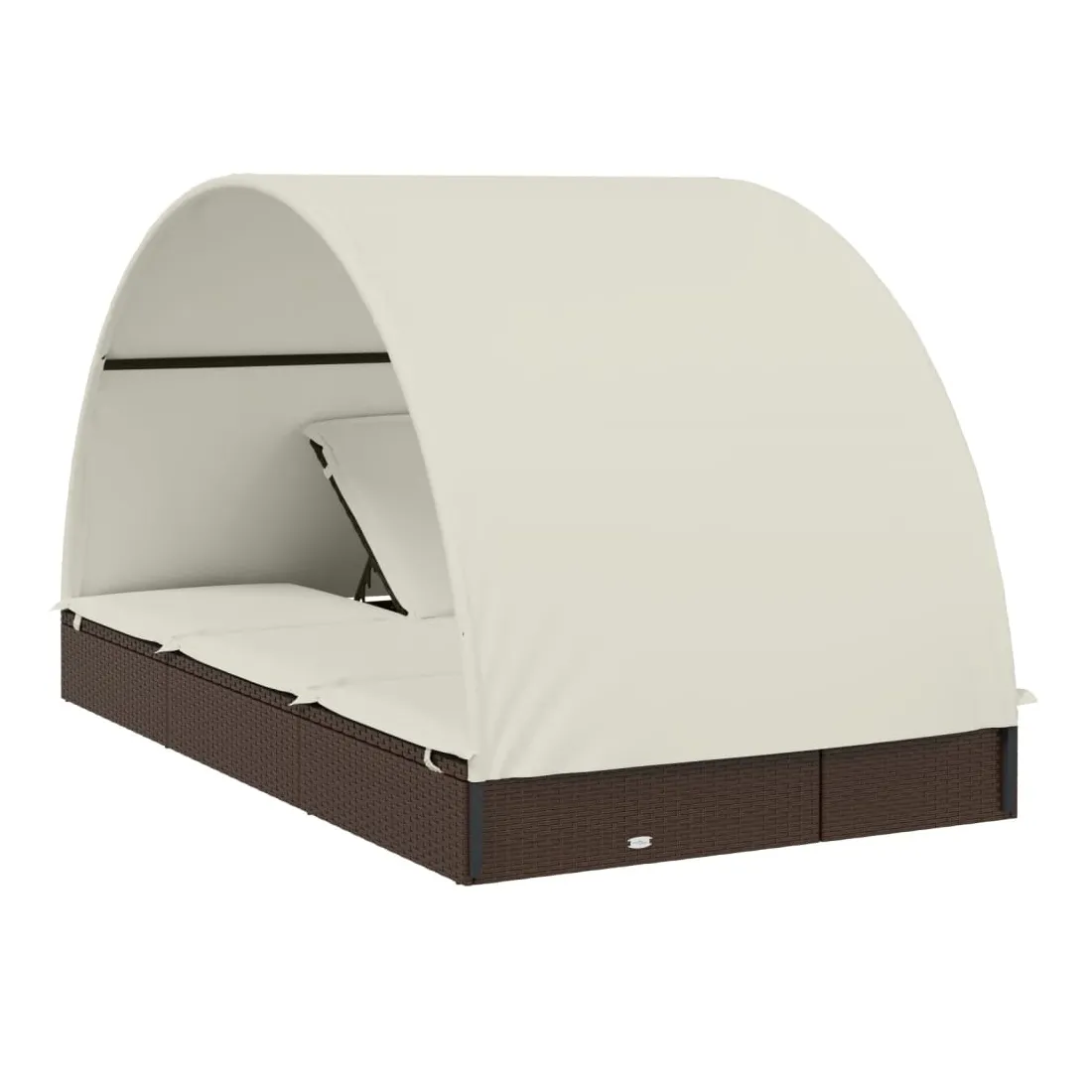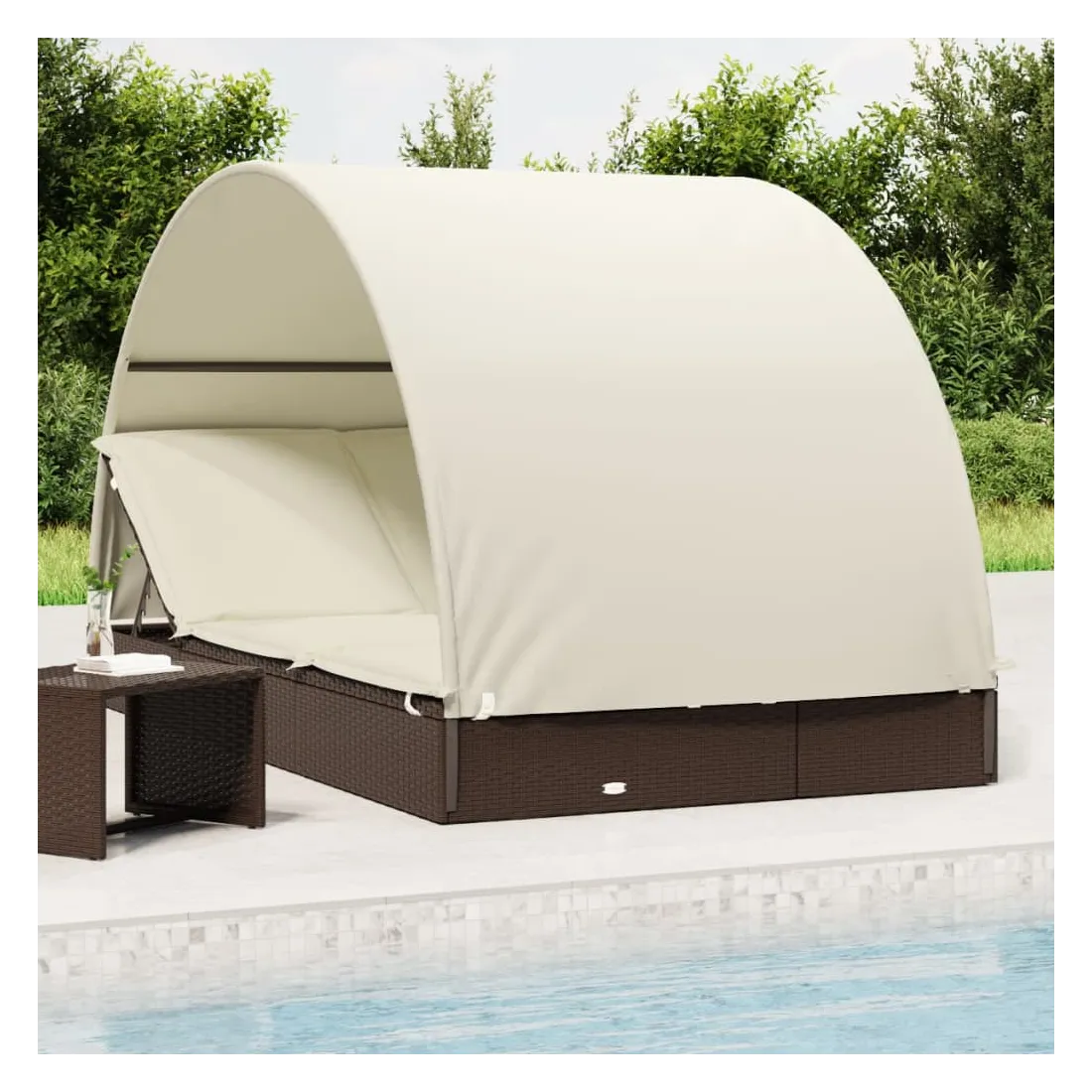 Ce transat 2 places avec un toit rond est idéal pour se détendre au bord de la piscine, sur votre balcon ou au camping pendant vos vacances ou vos loisirs. Matériau durable : la chaise longue est fabriquée en rotin PE, résistant aux intempéries et facile à nettoyer. Elle reste belle à l'extérieur pendant longtemps. Elle est plus économique que d'autres matériaux tout en offrant une excellente qualité, commodité et un aspect esthétique.Cadre stable : l'acier est un matériau exceptionnellement dur et résistant. Il offre robustesse et stabilité au transat. Le revêtement en poudre sur l'acier crée une couche protectrice contre l'usure.Siège réglable : les deux côtés du lit de jour peuvent être tirés vers le haut et ajustés à différents angles pour une position allongée plus confortable.Toit rond : le toit offre de l'ombre et une protection contre la lumière directe du soleil. Bon à savoir :Pour faciliter au maximum le montage, chaque produit est livré avec des instructions. Remarque :Pour que vos meubles d'extérieur restent beaux, nous vous recommandons de les protéger avec une housse imperméable.