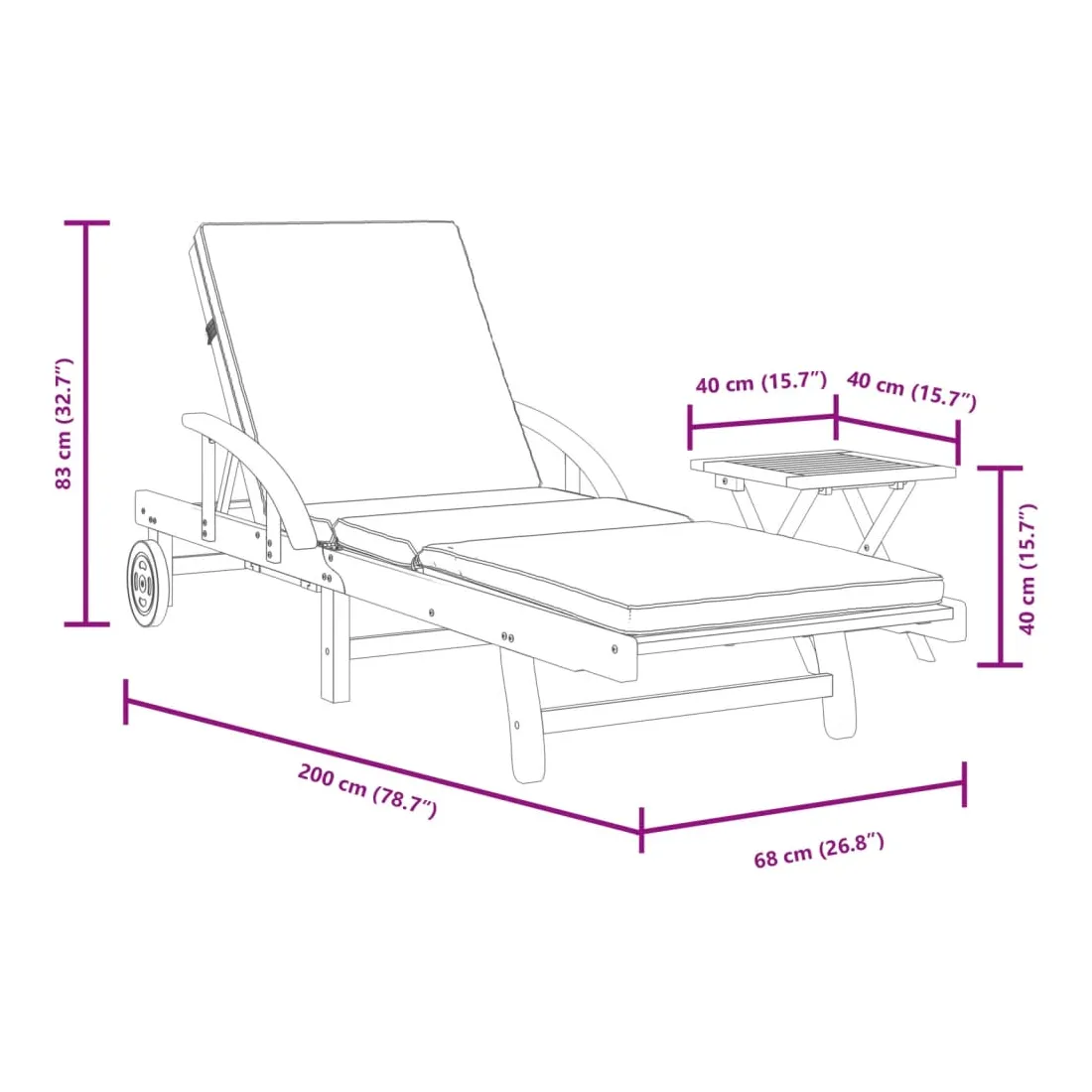 - Dimensions sans coussin : 200 x 68 x 30 - 83 cm (L x l x H)