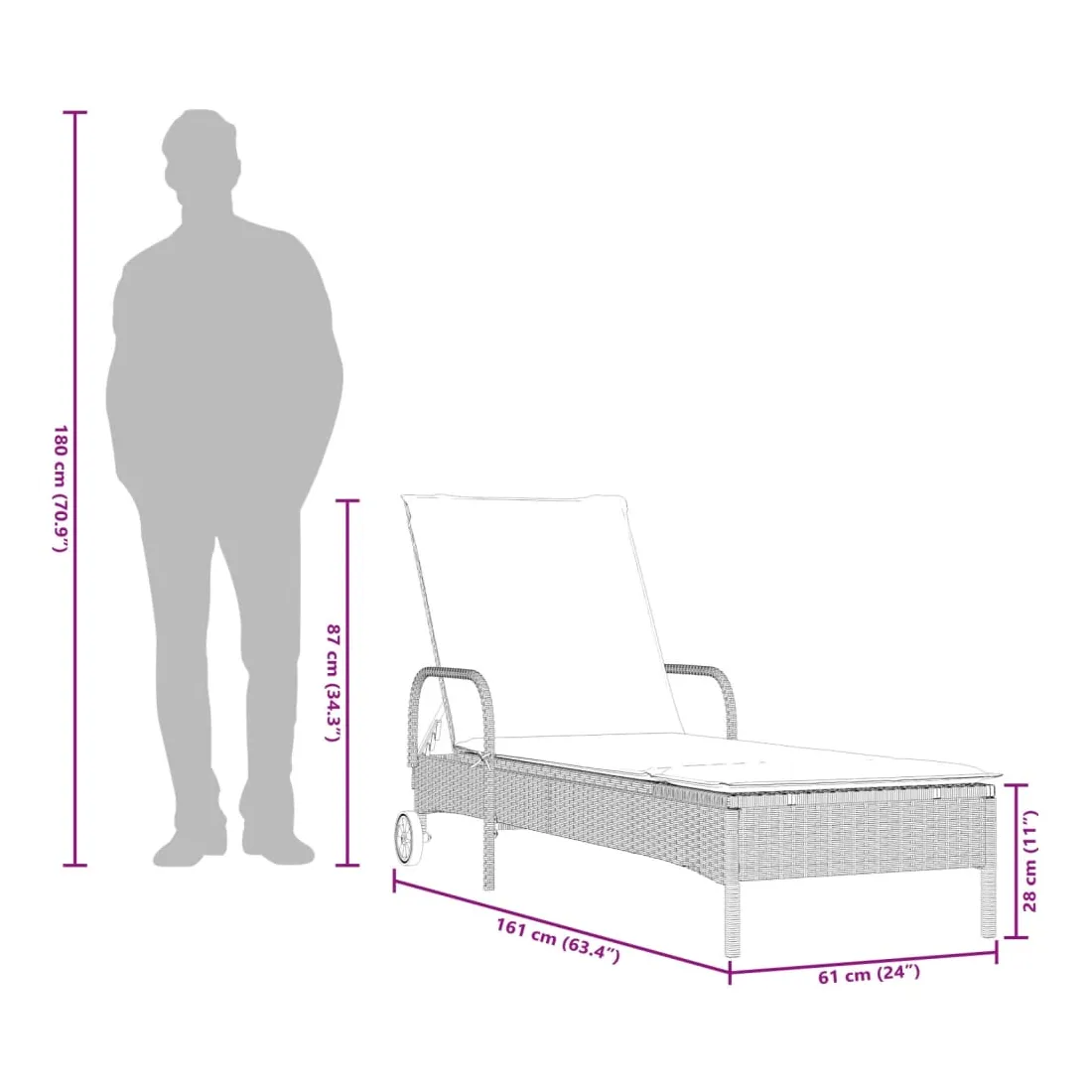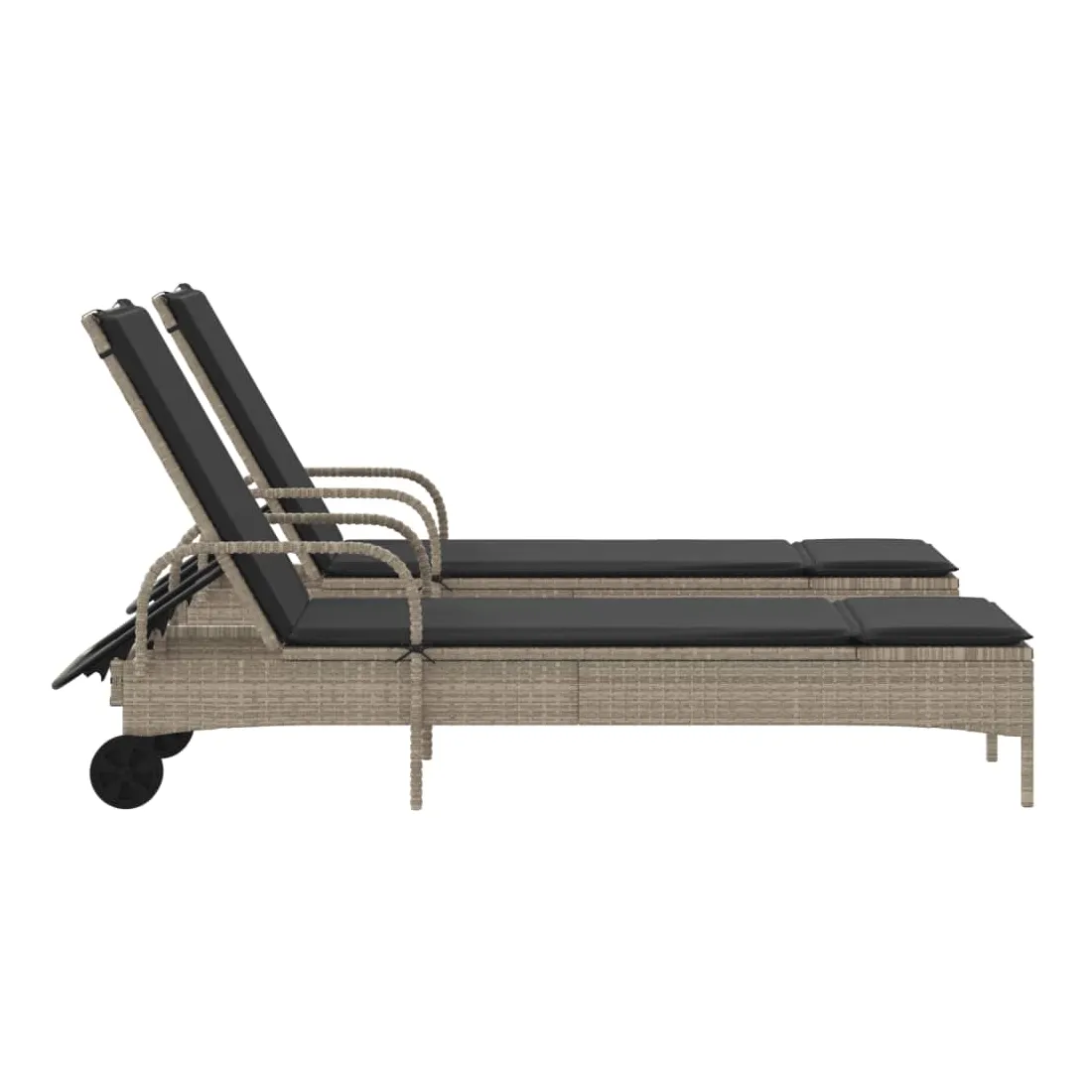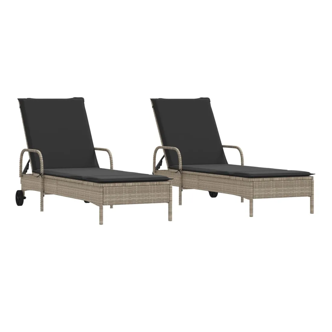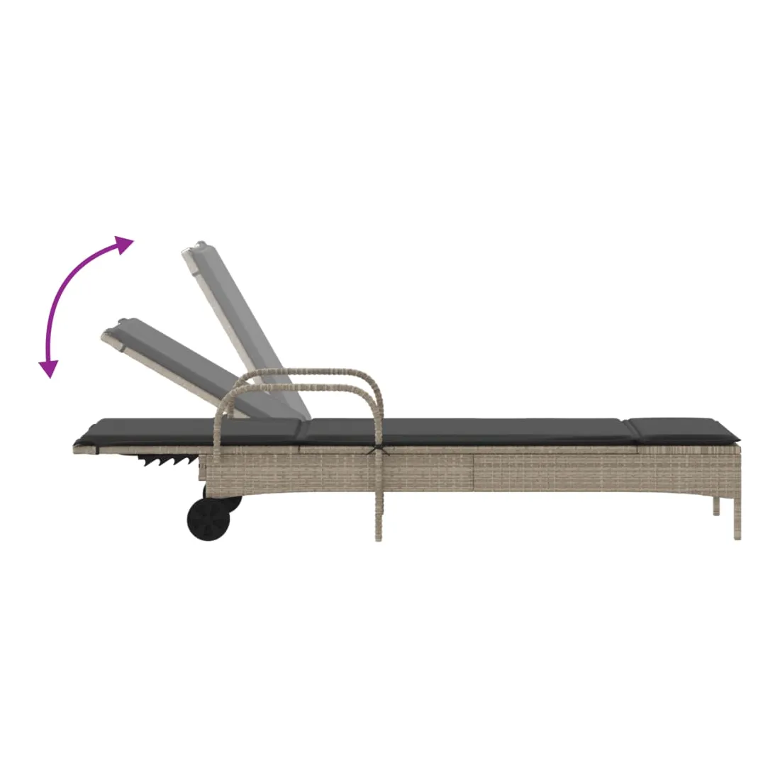 Détendez-vous et profitez du plein air avec ces chaises longues confortables ! Matériau durable : la résine tressée, également connue sous le nom de poly rotin, est un matériau synthétique solide et nécessitant peu d'entretien qui ressemble au rotin naturel. Il est léger, facile à nettoyer et couramment utilisé pour les meubles d'extérieur en raison de sa durabilité et de ses propriétés de résistance aux intempéries.Dossier réglables : ce meuble d'extérieur est doté d'un dossier à 3 positions réglables, ce qui vous permet de trouver facilement la position la plus confortable et la plus appropriée pour la détente.Déplacement sans effort : les 2 roues vous permettent de déplacer facilement ce meuble de jardin à l'endroit souhaité.Expérience d'assise confortable : ce mobilier d'extérieur, doté d'un coussin épais rembourré, offre une expérience d'assise confortable.Housse amovible et lavable : le coussin de siège est doté d'une housse amovible pour un lavage et un entretien faciles. Bon à savoir :Pour que vos meubles d'extérieur restent beaux, nous vous recommandons de les protéger avec une housse imperméable.