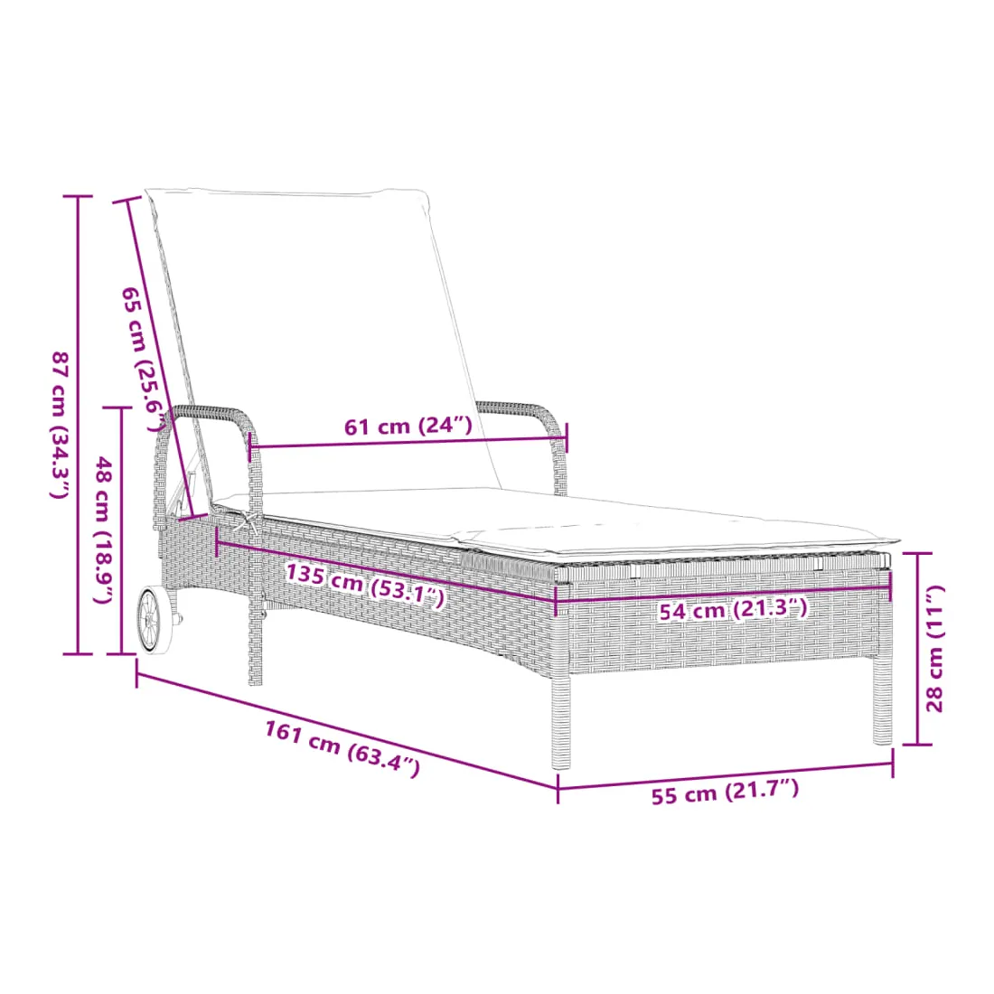- Chaise longue avec roulettes :