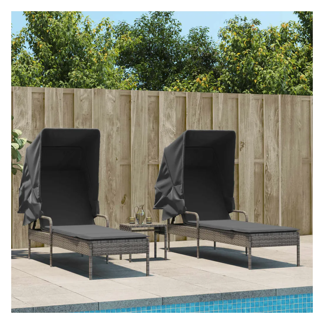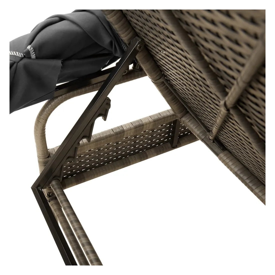 Détendez-vous et profitez du plein air avec ces chaises longues confortables ! Matériau durable : la résine tressée, également connue sous le nom de poly rotin, est un matériau synthétique solide et nécessitant peu d'entretien qui ressemble au rotin naturel. Il est léger, facile à nettoyer et couramment utilisé pour les meubles d'extérieur en raison de sa durabilité et de ses propriétés de résistance aux intempéries.Dossier réglables : ce meuble d'extérieur est doté d'un dossier à 4 positions réglables, ce qui vous permet de trouver facilement la position la plus confortable et la plus appropriée pour la détente.Auvent rétractable : grâce à l'auvent rétractable, vous pouvez créer un environnement extérieur frais et agréable tout au long de la journée.Table à thé pratique : ce mobilier d'extérieur est doté d'une table à thé, qui permet de ranger vos objets essentiels à portée de main.Expérience d'assise confortable : ce mobilier d'extérieur, doté d'un coussin épais rembourré, offre une expérience d'assise confortable. Bon à savoir :Pour que vos meubles d'extérieur restent beaux, nous vous recommandons de les protéger avec une housse imperméable.