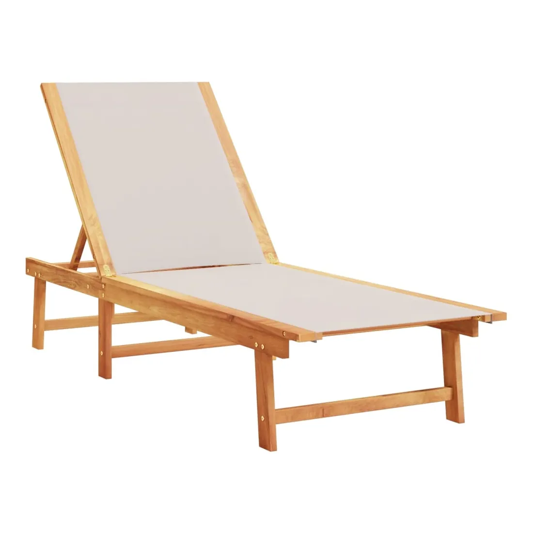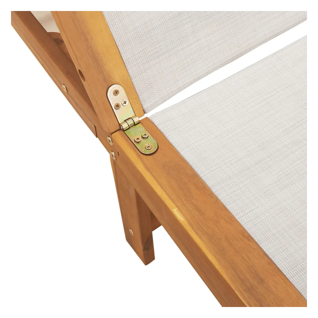 Ces chaises longues classiques sont idéales pour prendre un bain de soleil et vous détendre près de la piscine, sur la terrasse ou dans le jardin. Robuste et stable : le bois d'acacia massif est connu pour sa solidité et sa durabilité. Ses couleurs variées et ses grains uniques lui confèrent un aspect attrayant. Sa stabilité et sa résistance aux intempéries en font un matériau idéal pour la fabrication de meubles d'intérieur et d'extérieur.Durable et longue durée de vie : le tissu textilène est apprécié pour sa durabilité, résistance à l'eau et à la décoloration, facilité d'entretien et protection contre les rayons UV et la moisissure, ce qui en fait un choix idéal pour le meuble d'extérieur et les structures d'ombrage.Dossier réglables : ce transat est doté d'un dossier à 5 positions réglables, ce qui vous permet de trouver facilement la position la plus confortable et la plus appropriée pour la détente.Nombreuses applications : la chaise longue d'extérieur, au design simple et intemporel, convient aux bords de piscine, aux balcons, aux jardins, aux patios, etc. Bon à savoir :Pour que vos meubles d'extérieur restent beaux, nous vous recommandons de les protéger avec une housse imperméable.