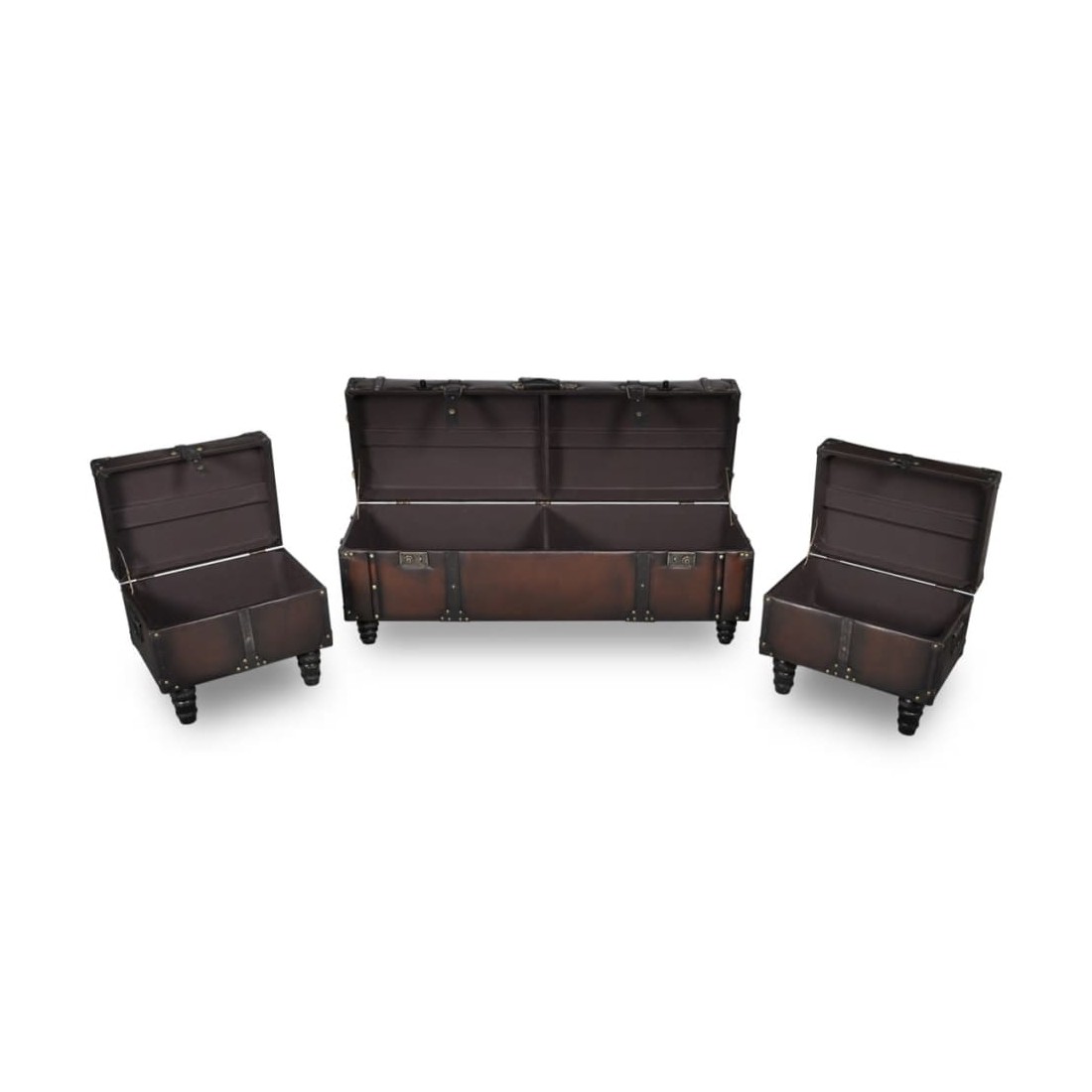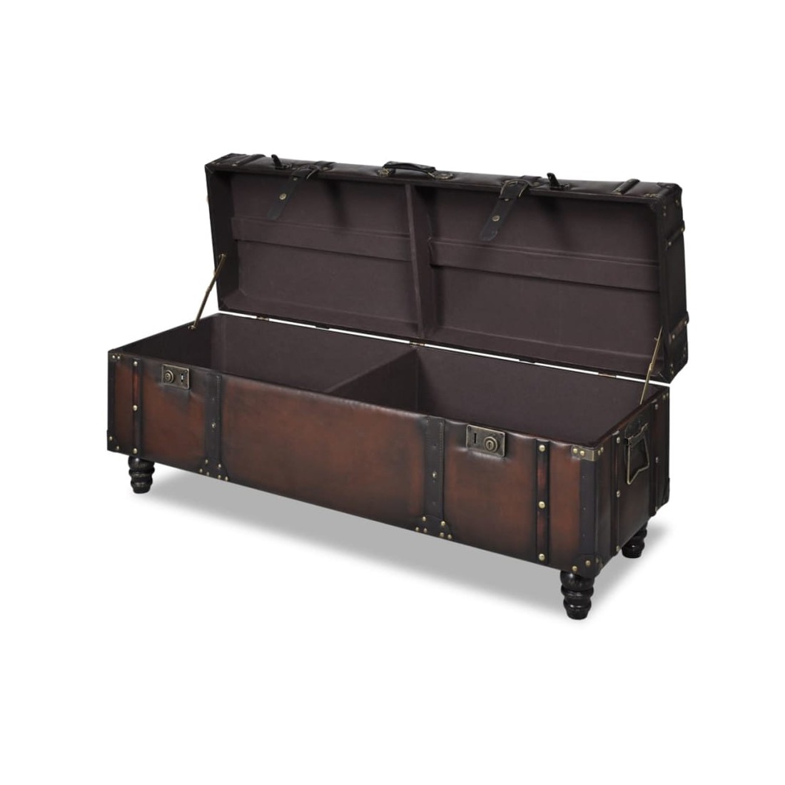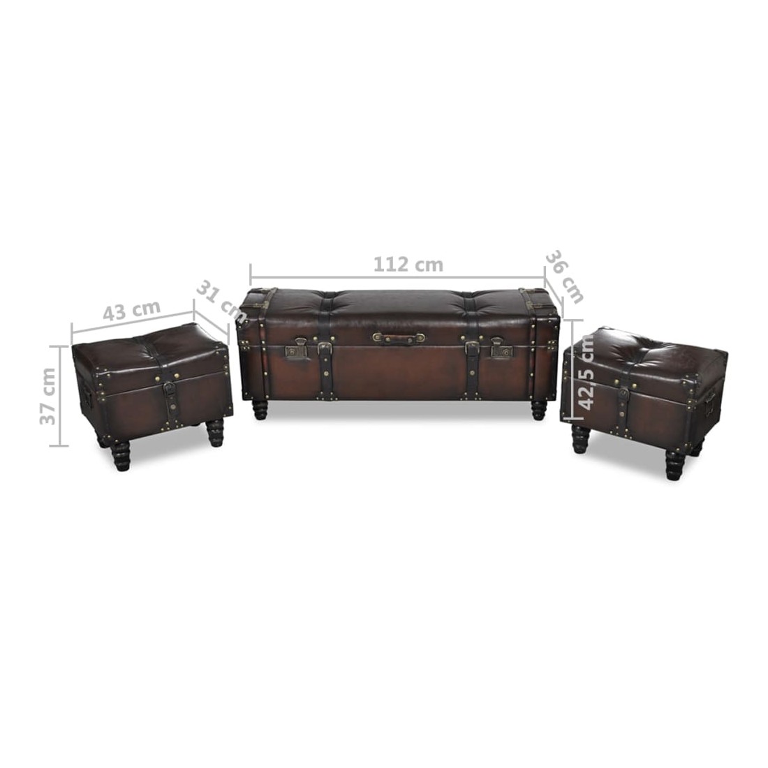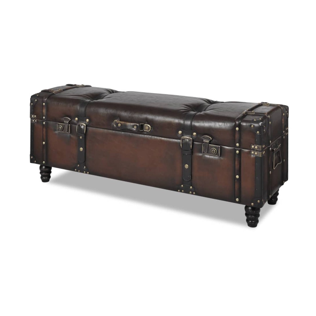 Ce banc de rangement contient un long banc de rangement et 2 poufs. Doté d'un style élégant avec une finition riche en marron foncé, il est le choix idéal pour compléter votre décoration intérieure. Le banc, ainsi que les 2 poufs, ont un cadre en bois durable recouvert de similicuir de haute qualité et facile à nettoyer. Le dessus capitonné et le rembourrage moelleux vous apporteront sûrement un confort optimal. Dans le même temps, le meuble fournit suffisamment d’espace en dessous pour stocker tout type d'articles. L'espace de rangement intérieur caché le rend fonctionnel sans nuire à son aspect élégant. Les poignées attachées sur le banc et les poufs garantissent un confort et une meilleure adhérence, tandis que les boucles permettent de verrouiller l'ensemble de banc pour plus de sécurité.
