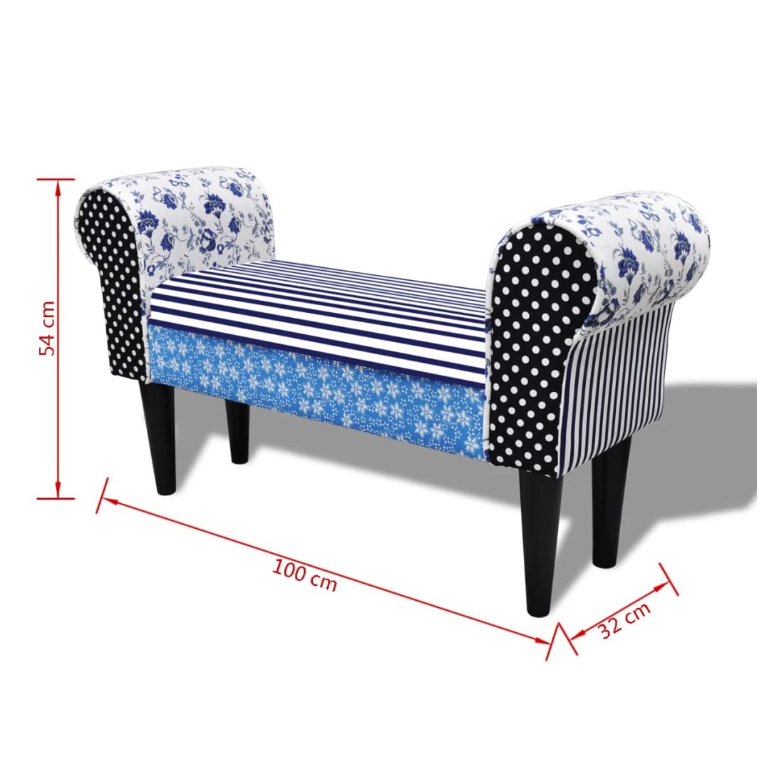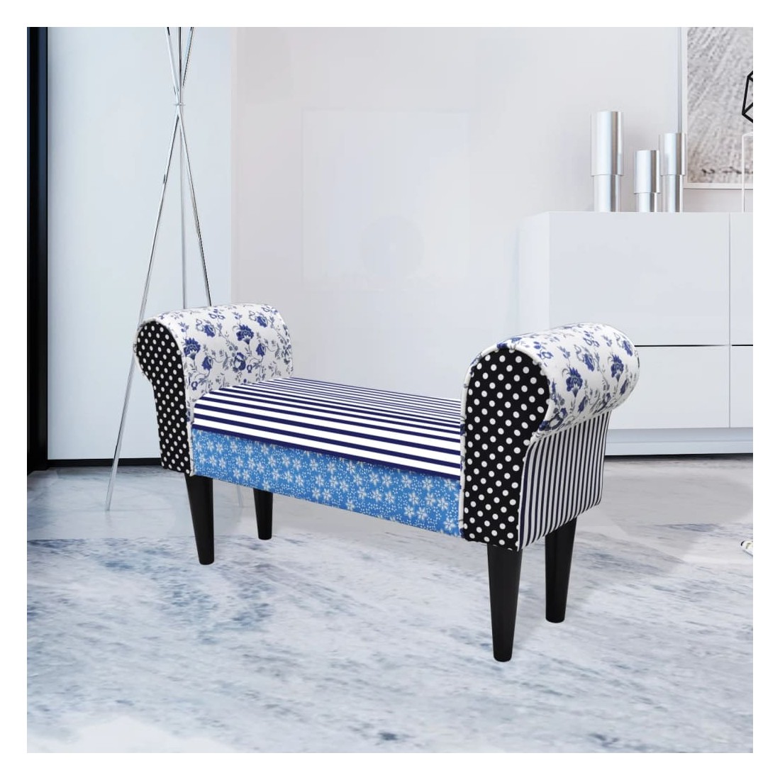 Ce banc de haute qualité avec patchwork dans un style campagnard est une bonne décoration et un bon mobilier pour tout décor intérieur comme une chambre à coucher, un salon, une salle familiale et un salon. Il donnera à coup sûr à votre espace une ambiance simple, naturelle, confortable et relaxante.Fabriqué avec un cadre en bois et recouvert d'un tissu, ce banc est robuste mais confortable et est conçu pour des années d'utilisation. Son dessus rembourré vous offrira une expérience d'assise confortable.